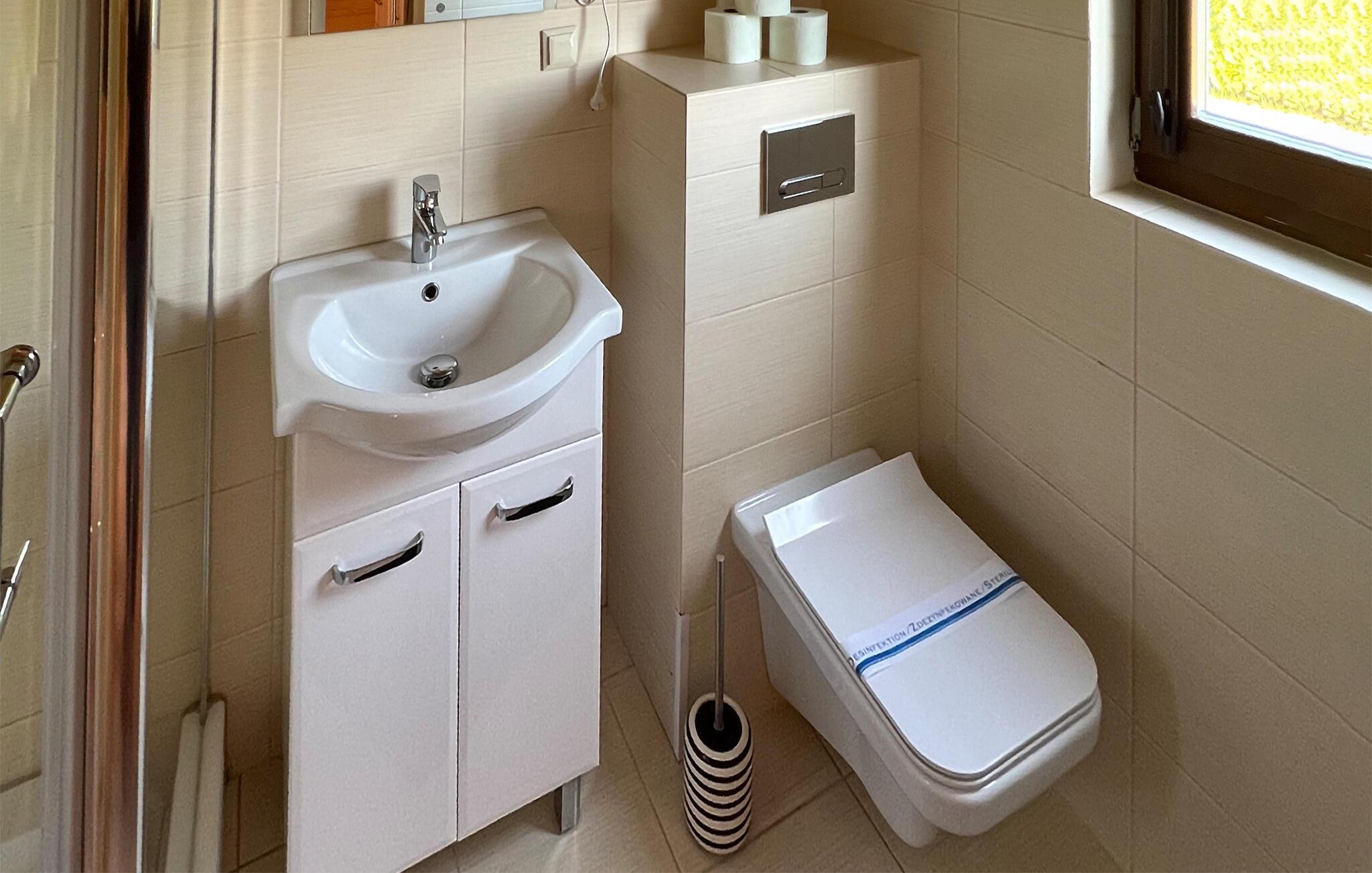 Badeværelse (nr. 1) - WC. Varmt og koldt vand. Bruser