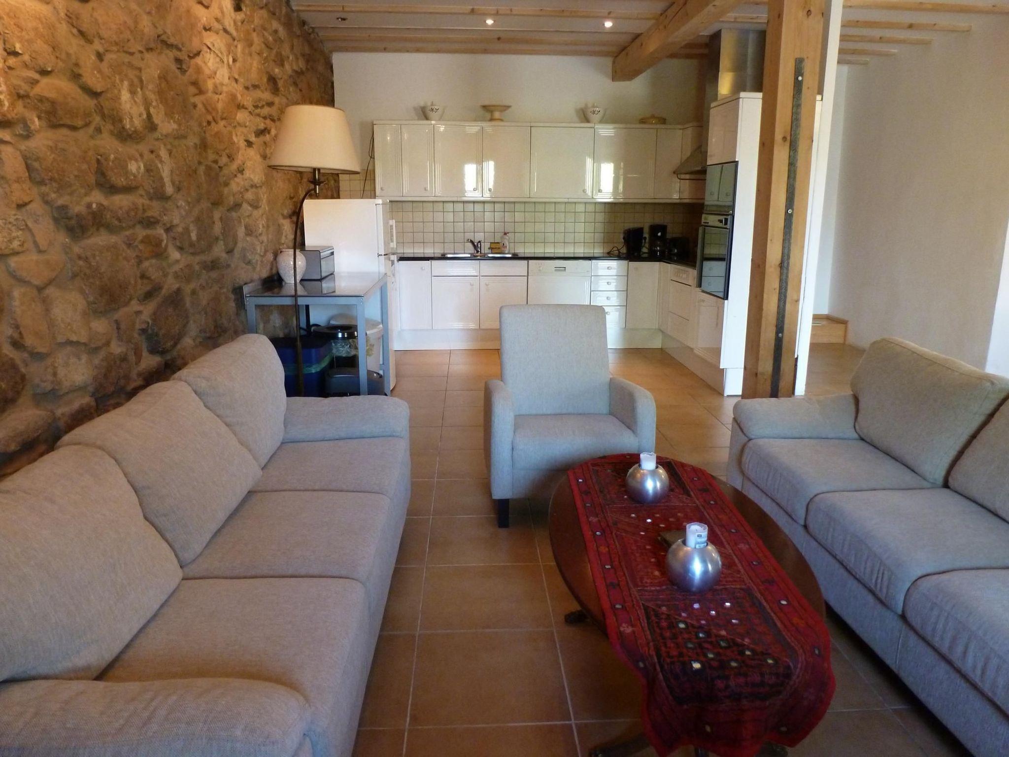 Domstolat B is the second house section of the large farm house Domstolat. This used to be the stable part of the house. The rooms have been completely converted into a home with living room and kitchen on the ground floor, an indoor children's play area on the first floor with football table and mini billiards, and three bedrooms with two luxury bathrooms on the third floor. Please note, there is a steep staircase. This property offers plenty of space and pets are also welcome.
