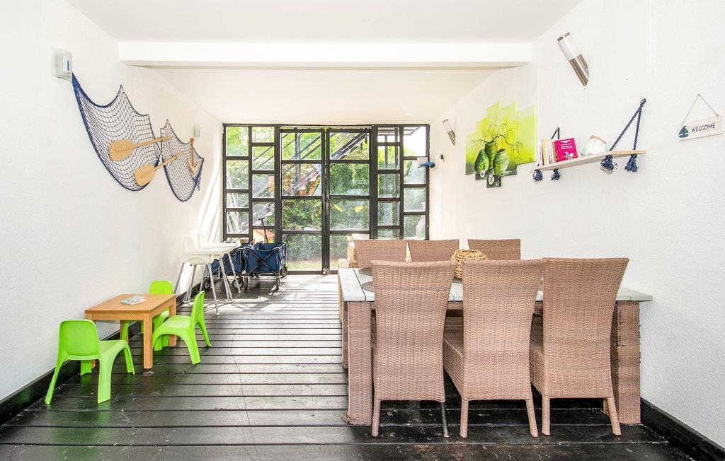 Tag familien med og nyd en afslappende ferie i denne charmerende og hyggelige ferielejlighed. Unge og gamle kan føle sig hjemme her og slappe af sammen. Den smukke lejlighed er veludstyret, så I kan lave mad, lege og hygge jer. En fælles terrasse inviterer jer til at slappe af og spille brætspil ved bordet eller i loungemøblerne.