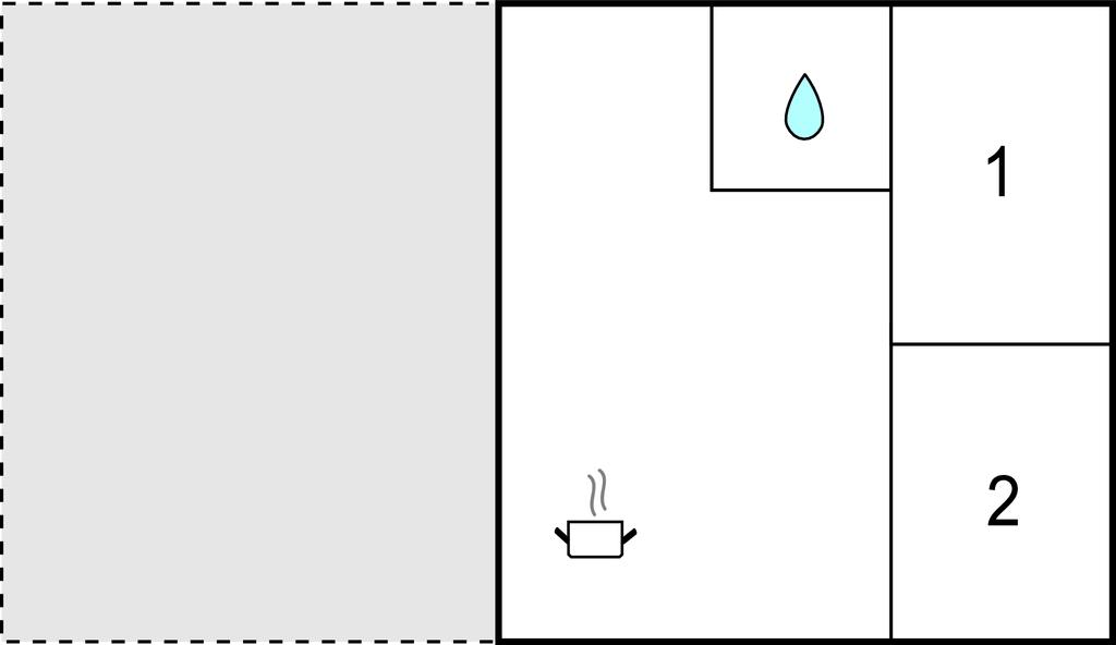 Badeværelse 3m2 (nr. 1) - WC. Varmt og koldt vand. Bruser