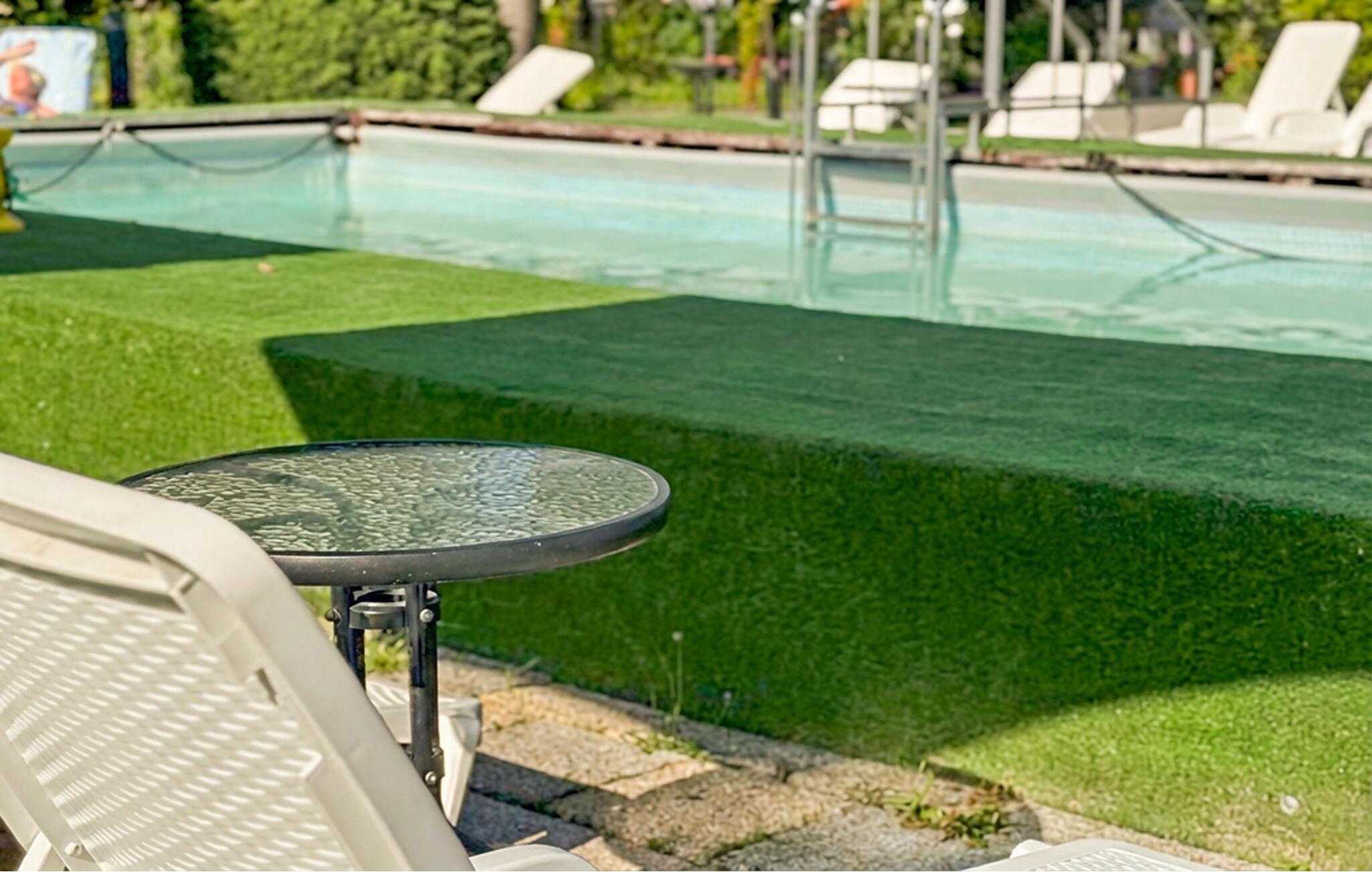 In den warmen Sommermonaten können Sie sich im großen, gemeinschaftlich genutzten Pool erfrischen. Spielen Sie Volleyball, knüpfen Sie nette Kontakte am Gemeinschaftsgrill und plaudern Sie mit anderen Gästen an der Feuerstelle. Mitreisende Kinder können sich auf dem eingezäunten Grundstück an vielfältigen Spielmöglichkeiten erfreuen.