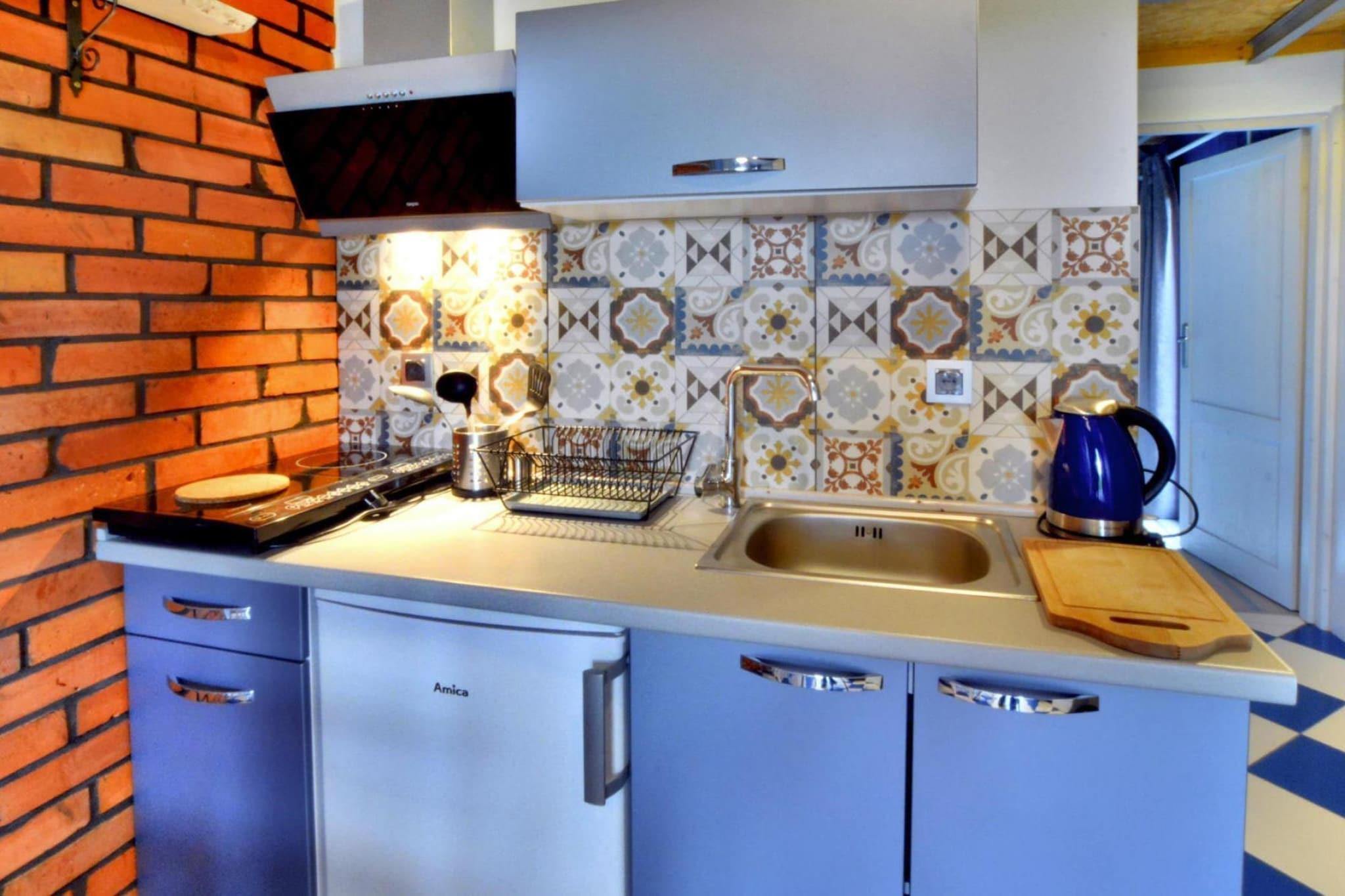 Et intimt feriested beliggende i udkanten af ??sommerlandsbyen Jezierzany. Stranden ved havet ligger ca. 3 km væk. Kun 1 km til bredden af ??Lake Wicko (du kan fiske der, leje en båd og svømme der). Hvert af de hyggelige huse har 2 selvstændige boliger og kan rumme 2 familier (2 separate indgange). I stueetagen er der en stue med køkken, et soveværelse og et badeværelse med bruser. På loftet er der et rummeligt åbent rum med dejligt soveværelse med dobbeltseng. Foran huset er der en overdækket terrasse med et sæt havemøbler. Trådløst internet er tilgængeligt. Vaskemaskinen er offentlig tilgængelig (anmeld det i receptionen). Centret har en parkeringsplads, en attraktiv legeplads og en grillplads (med passende udstyr). Prisen for opholdet inkluderer: sengelinned, vandforbrug, parkering, internet, ophold med hund (max 1), slutrengøring, barneseng og høj stol (forudgående reservation nødvendig). Jezierzany er en stille, lille ferieby, beliggende på den centrale kyst, tæt på Jaroslawiec, Darlowo og Ustka. Stranden ved havet er perfekt for turister, der kan lide at solbade på uoverfyldte steder. På stranden kan du se farverige fiskerbåde og finde gyldent rav. I nabolandet Jaroslawiec er der den største klippe på den centrale kyst - dens længde er omkring 2 km og højden er op til 24 m. Der er mange udsigtspunkter langs klippekysten, hvorfra du kan beundre den smukke strand og den rene Østersø. Et interessant monument i Jaroslawiec er fyrtårnet.
