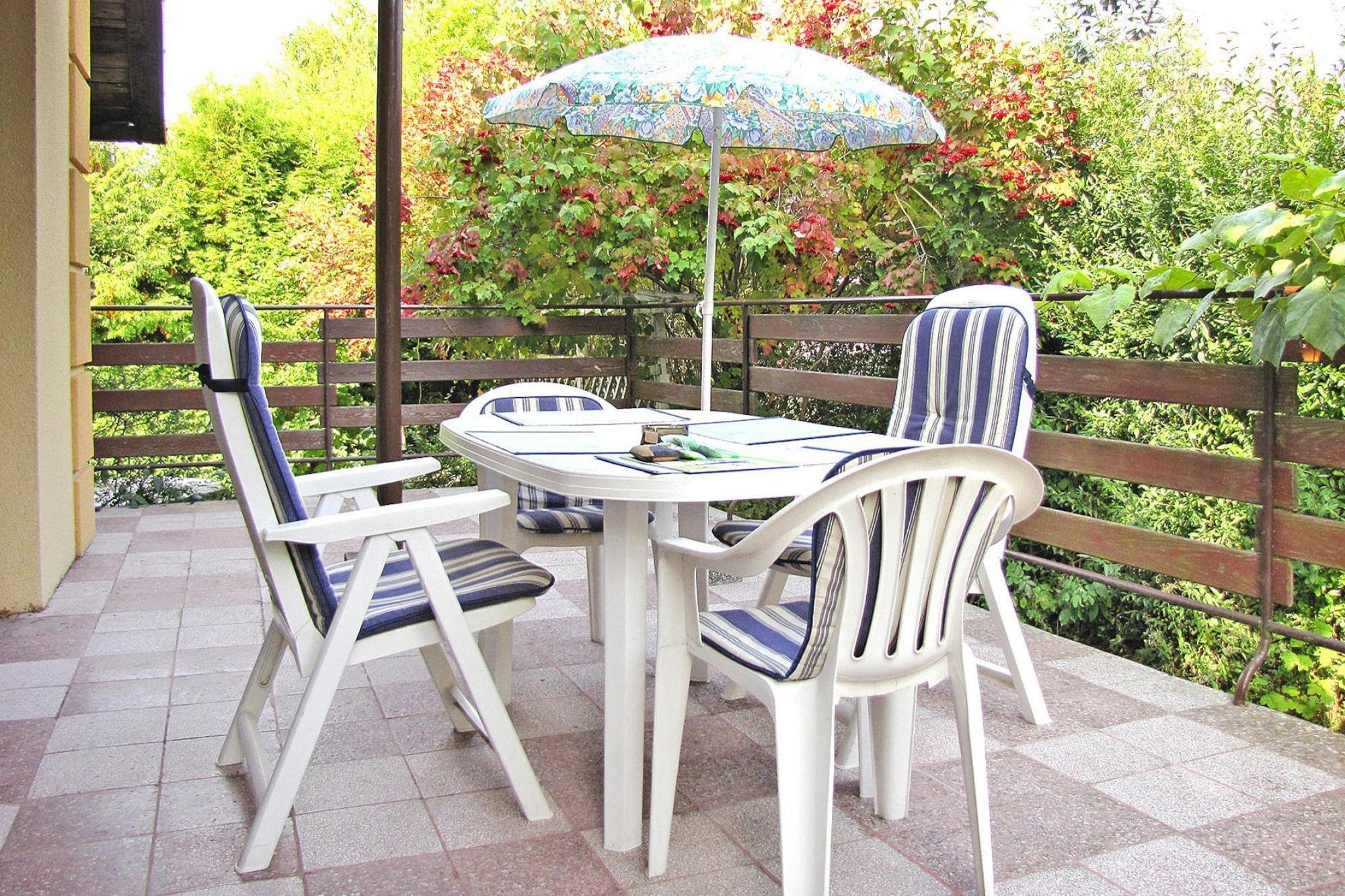 Stueetage: (åbent køkken(elkedel, cooker, komfur(Komfur med fire kogeplader, gas), espressomaskine, mikrobølgeovn, køle-fryseskab), stue / spisestue(Fjernsyn, spisebord, sofahjørne, radio), badeværelse(bruser, håndvask), toilet(håndvask, toilet)) På 1. etage: (soveværelse(enkeltseng, enkeltseng), soveværelse(enkeltseng, enkeltseng, enkeltseng), toilet(håndvask, toilet)) garage, balkon, terrasse(overdækket), have(privat, indhegnet, anlagt have), cykelopbevaring, havemøbler, parkering, Parasol