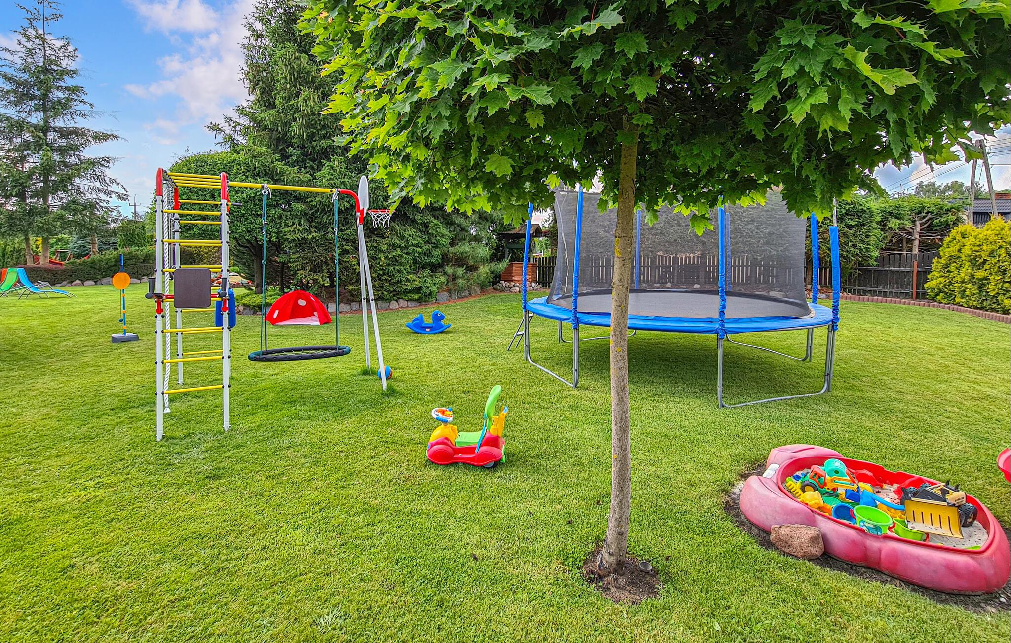 Glæd jer til hyggelige timer udendørs, hvor I kan nyde solen på terrassen, snuppe en frisk dukkert i poolen, der deles med andre gæster, og grille på lune sommeraftener. Børnene vil blive godt underholdt takket være de mange legeredskaber.
