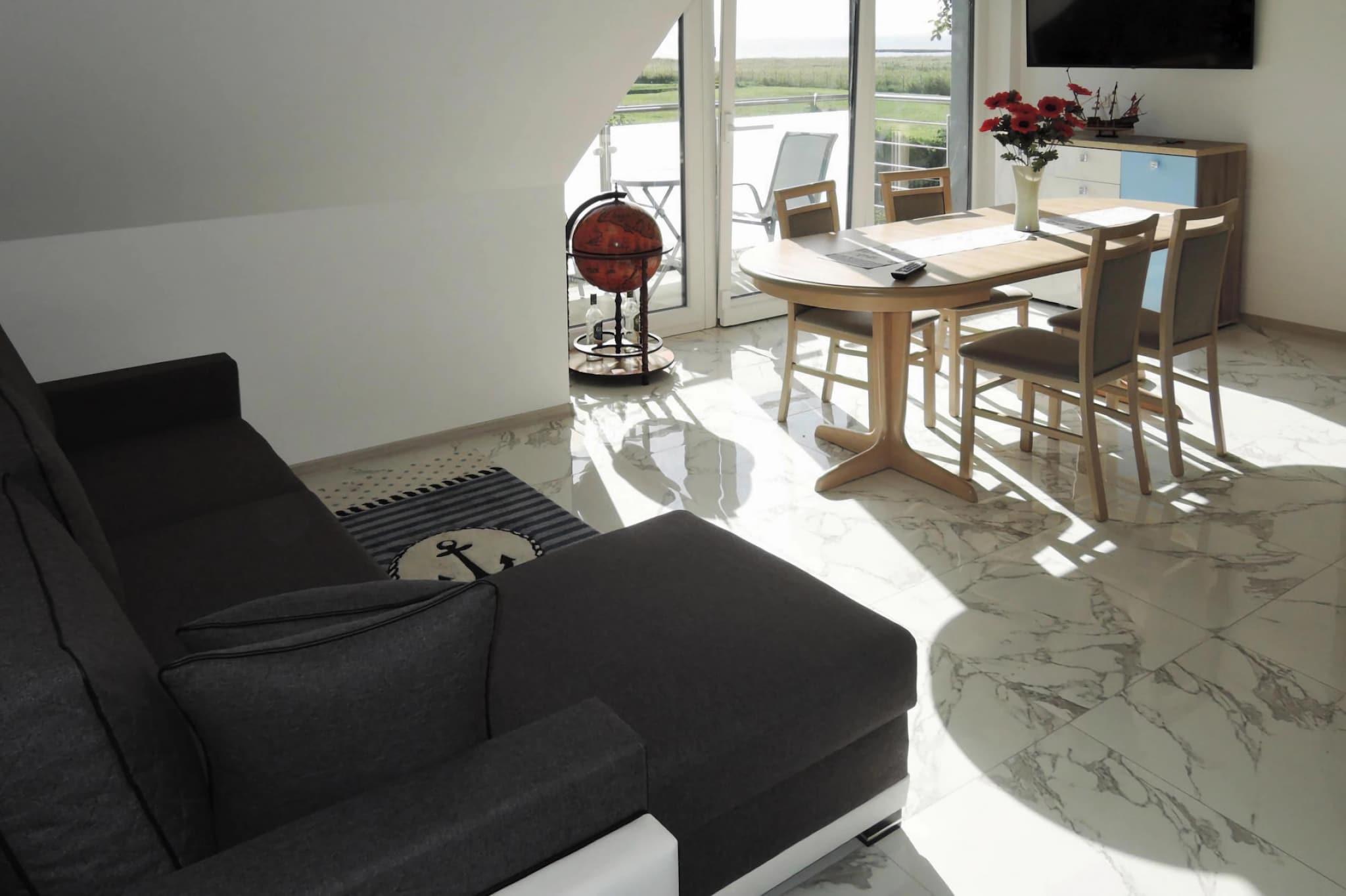 Det nybyggede feriehus er beliggende midt i Wolin National Park, i en idyllisk og direkte beliggenhed ved Szczecin lagunen. Lyst og moderne indrettet og fra balkonen har du en smuk udsigt over lagunen i Szczecin. Hvis du ønsker, kan du leje to kanoer på stedet og tage en vand udflugt på Szczecin lagunen. Landsbyen Karnocicie ligger omkring 5 km vest for Wollin, 23 km sydvest for Kamie? Pomorski og 49 km nord for hovedstaden Szczecin landlige byer imponerer med sin direkte beliggenhed lige ved Szczecin-lagunen, omgivet af den naturlige Wolin Nationalpark med veludviklede vandre- og cykelstier. Detaljer: Forbrugsbaserede energiomkostninger, sengelinned, håndklæder, slutrengøring Turistskat Aktiviteter i nærheden: Szczecin-lagunen byder på mange muligheder for at tilbringe din ferie, for eksempel kan du leje kajakker, sejlbåde, robåde og vandcykler direkte ved ejendommen og tilbringe dagen på vandet. Du kan også køre til den velkendte by Miedzyzdroje, cirka 15 minutter i bil, og til den næststørste by, Wollin, hvor du kan finde et udvalg af butikker. Leder du efter mere end blot en badeferie, finder du det på øen Wollin. Nærliggende attraktioner omfatter havnebyen Wollin, det tidligere mødested for handlende fra hele verden med dens Wkinger fæstning, Kreideberg ved Miedzyzdroje med en fantastisk udsigt over Østersøen, det vestlige picnicområde i Sulomino (i juli) og Bunkermuseet Zalesie. Også en tur til den turkise skinnende stenbrudsdam Jezioro Turkusowe i Wapnica, udsigtspunktet "grøn bakke" med udsigt over grisedeltaet og naturstensfyret "Latarnia Kikut" i Wiselka. Ikke egnet til personer med nedsat mobilitet