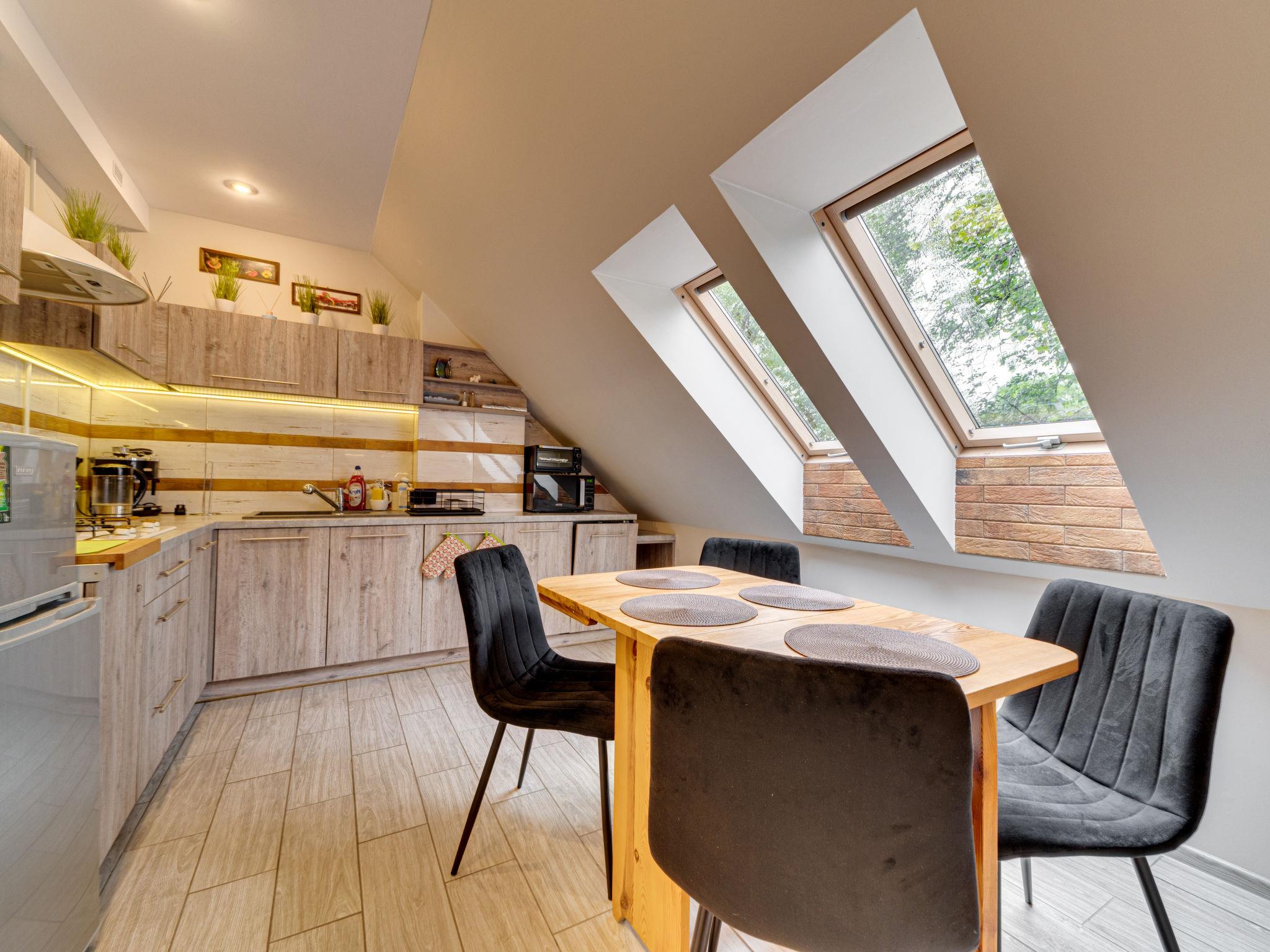 Apartment house, built in 2012. In the resort, on the outskirts, in a sunny position on a slope, in the countryside. For shared use: property (fenced), garden. Barbecue. In the house: WiFi, central heating system, tumble dryer. Motor access to the house. Parking at the house. Grocery 1 km, supermarket 1.5 km, restaurant 2 km, bus stop 1 km, indoor swimming pool 5 km. Ski lift 1.5 km. Nearby attractions: Park Rozrywki Kulak Paark 200 m, Muzeum Zabawek 1 km, Karpatka Panorama Lift 1.2 km.