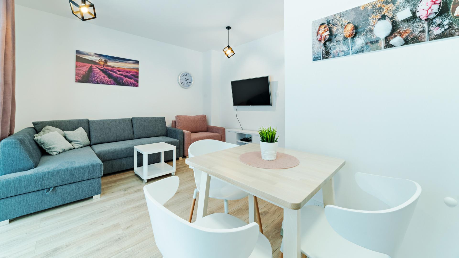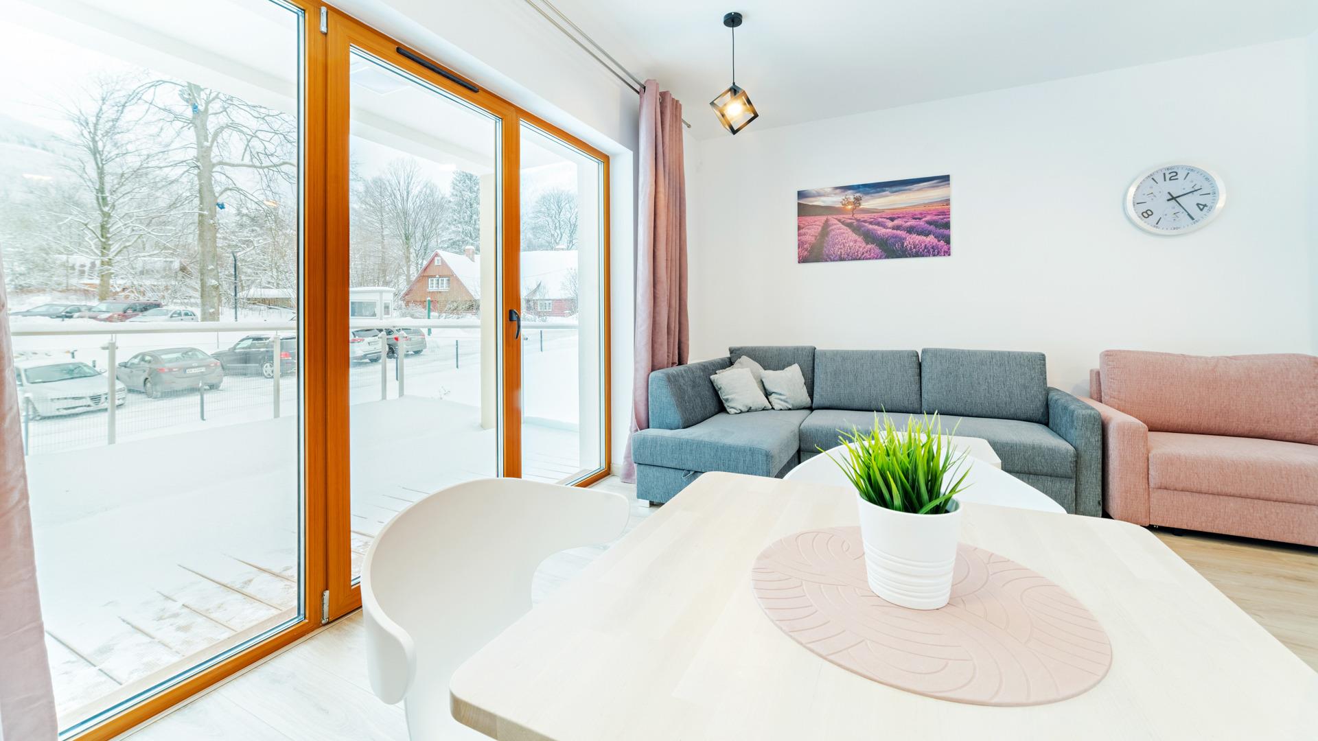 Hunde sind in ausgewählten Apartments willkommen. Der Aufpreis für die Unterbringung eines Haustieres beträgt 100 PLN (einmalige Gebühr). Gäste, die mit einem Hund übernachten möchten, werden gebeten, sich vorab telefonisch an die Mitarbeiter des örtlichen Büros in Karpacz zu wenden (die Telefonnummer finden Sie auf unserer Website im Reiter KONTAKT).
