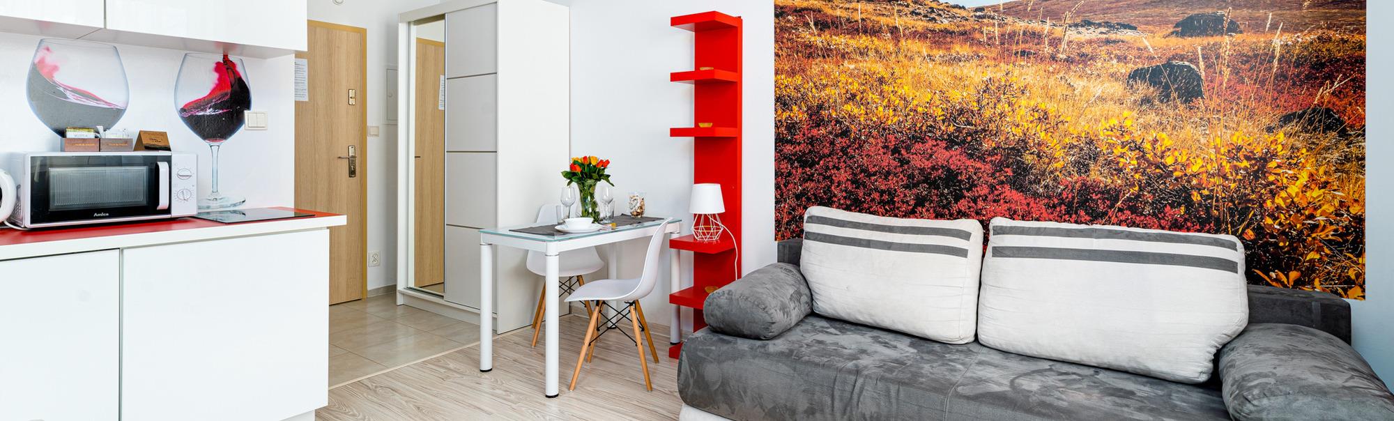 Zu den gewählten Apartments darf man mit dem Hund ankommen. Die zusätzlichen Kosten des Aufenthalts mit einem vierbeinigen Freund betragen 100 PLN (Einzelgebühr). Die Gäste, die den Aufenthalt mit dem Hund planen, bitten wir um eine frühere Kontaktaufnahme mit unserem Service im lokalen Büro.