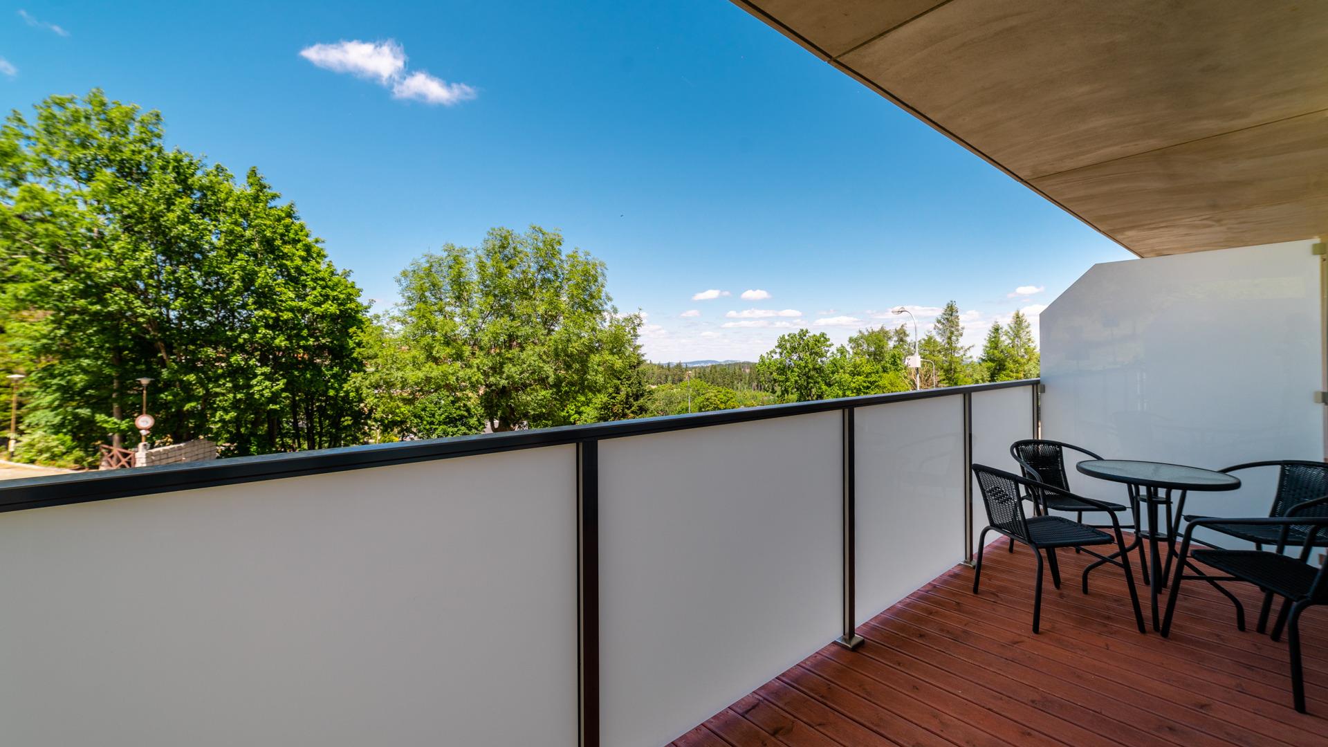 Die meisten Wohnungen verfügen über einen Balkon oder eine Terrasse.