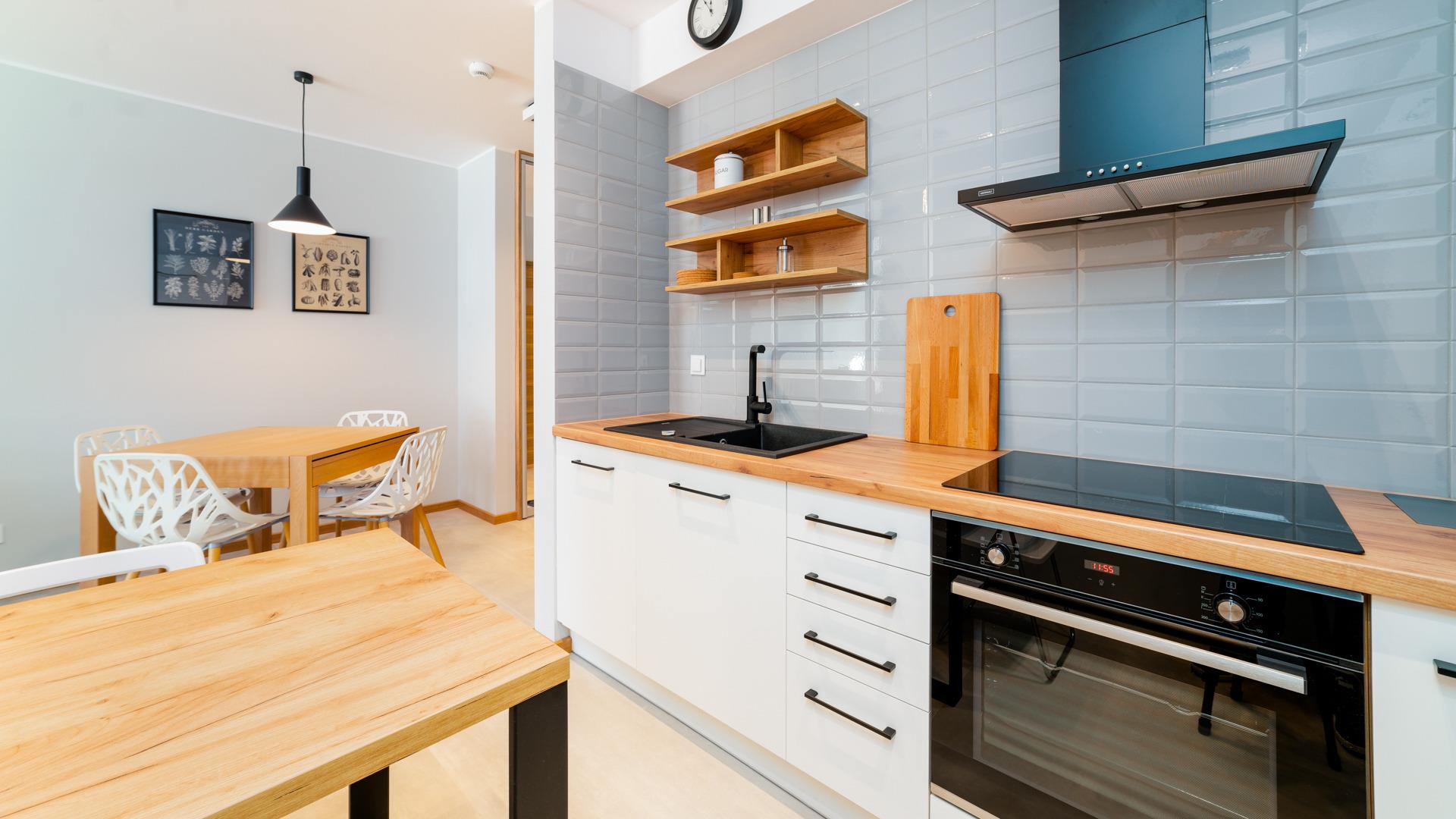 Alle angebotenen Apartments verfügen über eine voll ausgestattete Küchenzeile und ein elegantes Badezimmer mit Dusche.
