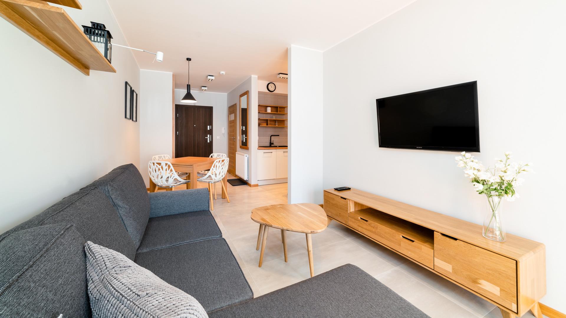 Zu den gewählten Apartments darf man mit dem Hund ankommen. Die zusätzlichen Kosten des Aufenthalts mit einem vierbeinigen Freund betragen 100 PLN (Einzelgebühr). Die Gäste, die den Aufenthalt mit dem Hund planen, bitten wir um eine frühere Kontaktaufnahme mit unserem Service im lokalen Büro.