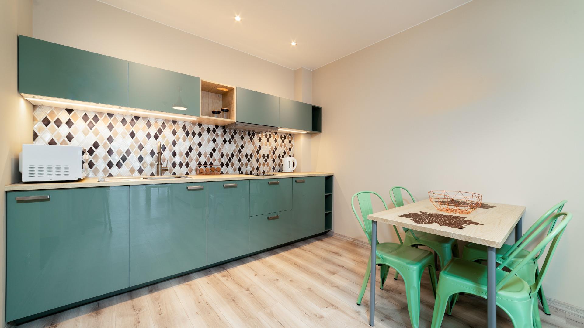 Alle angebotenen Apartments verfügen über eine voll ausgestattete Küchenzeile und ein elegantes Badezimmer mit Dusche.