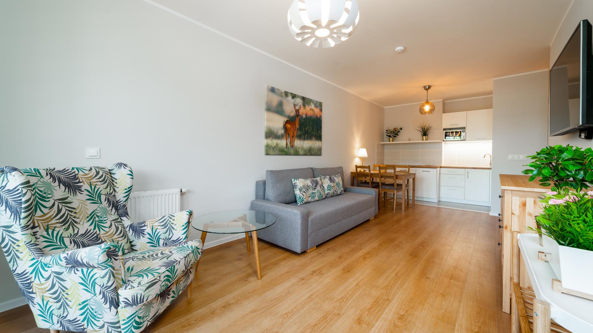 Zu den gewählten Apartments darf man mit dem Hund ankommen. Die zusätzlichen Kosten des Aufenthalts mit einem vierbeinigen Freund betragen 100 PLN (Einzelgebühr). Die Gäste, die den Aufenthalt mit dem Hund planen, bitten wir um eine frühere Kontaktaufnahme mit unserem Service im lokalen Büro.