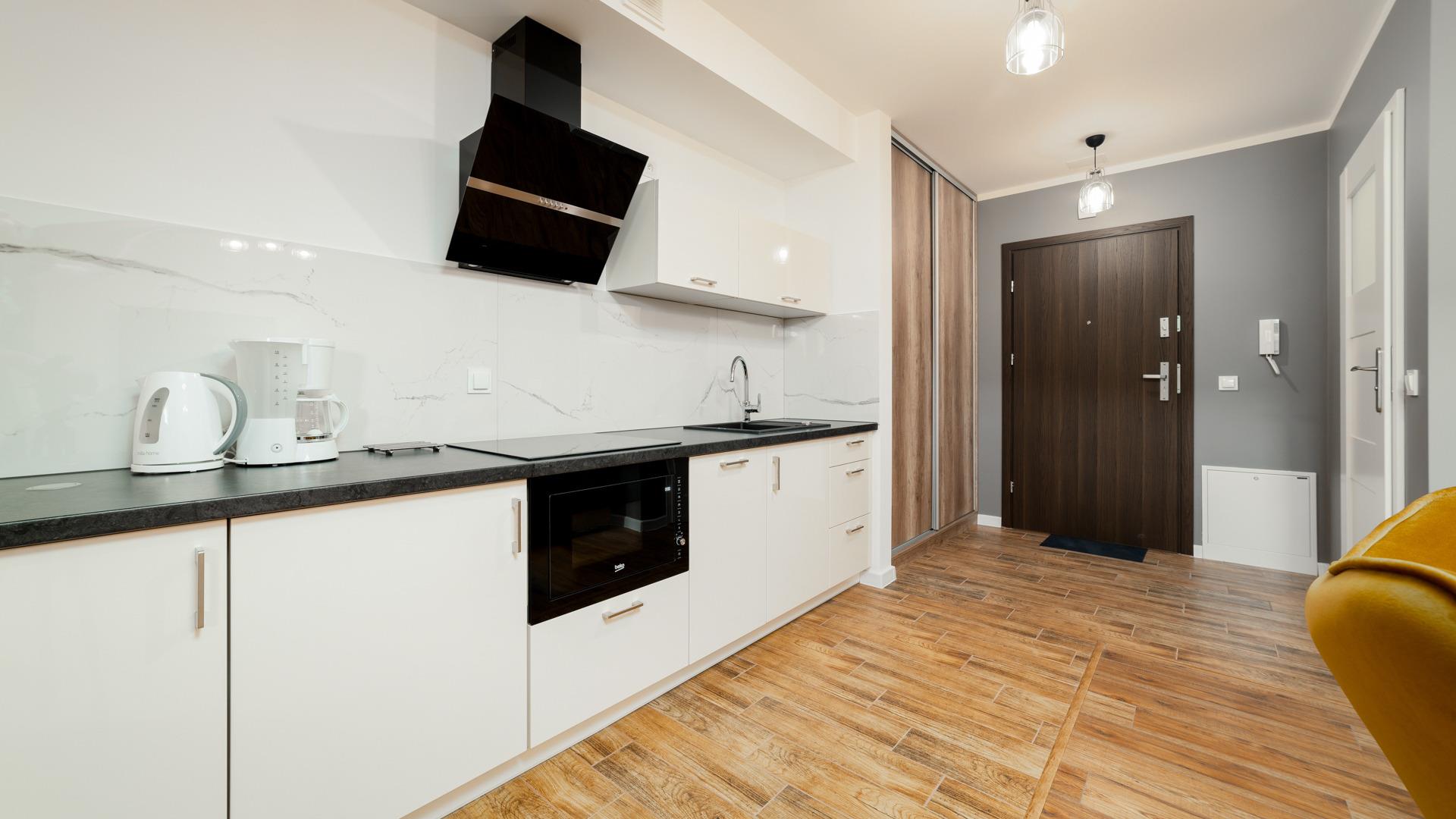 Alle angebotenen Apartments verfügen über eine voll ausgestattete Küchenzeile und ein elegantes Badezimmer mit Dusche.