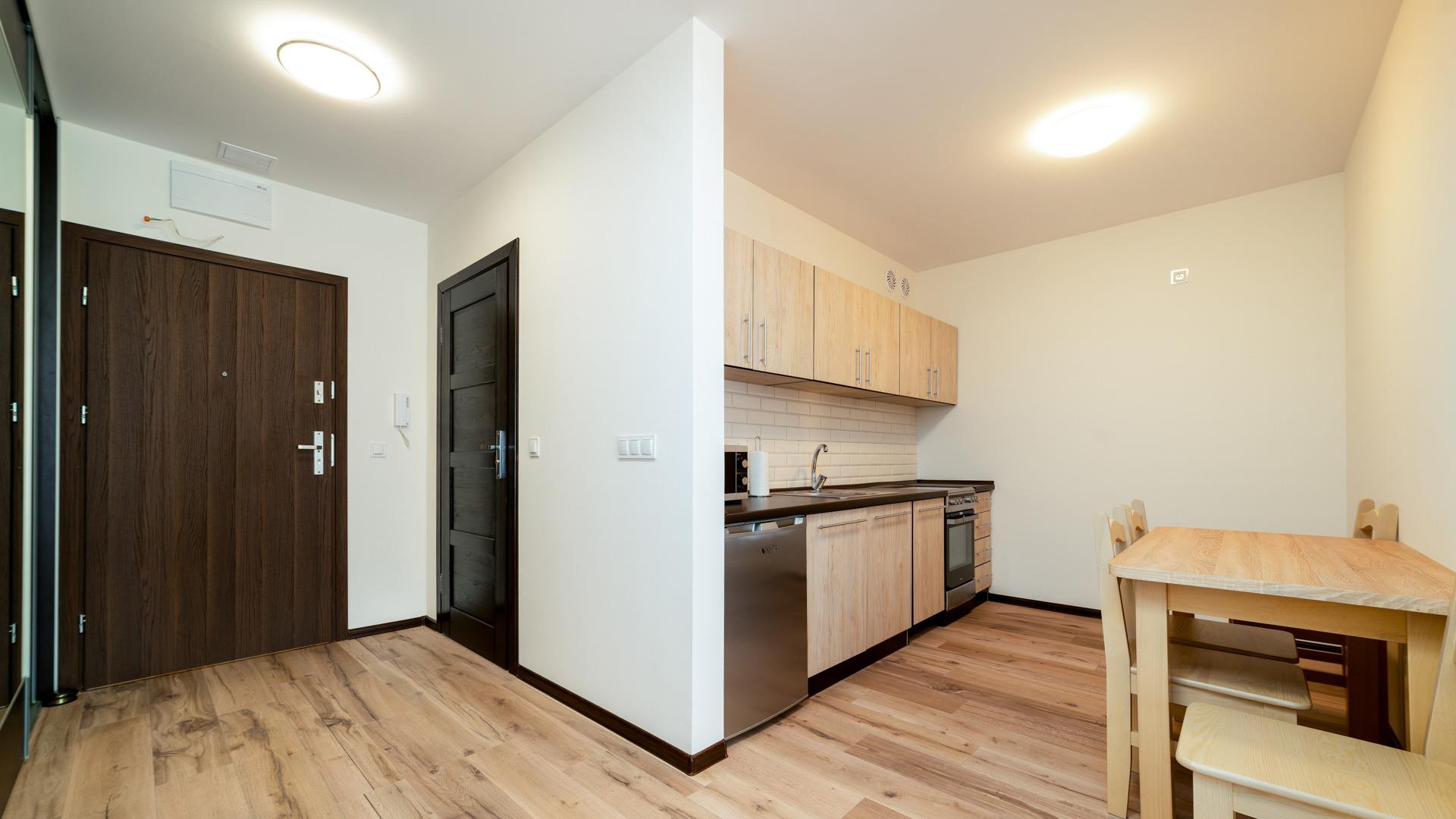 Alle angebotenen Apartments verfügen über eine voll ausgestattete Küchenzeile und ein elegantes Badezimmer mit Dusche.