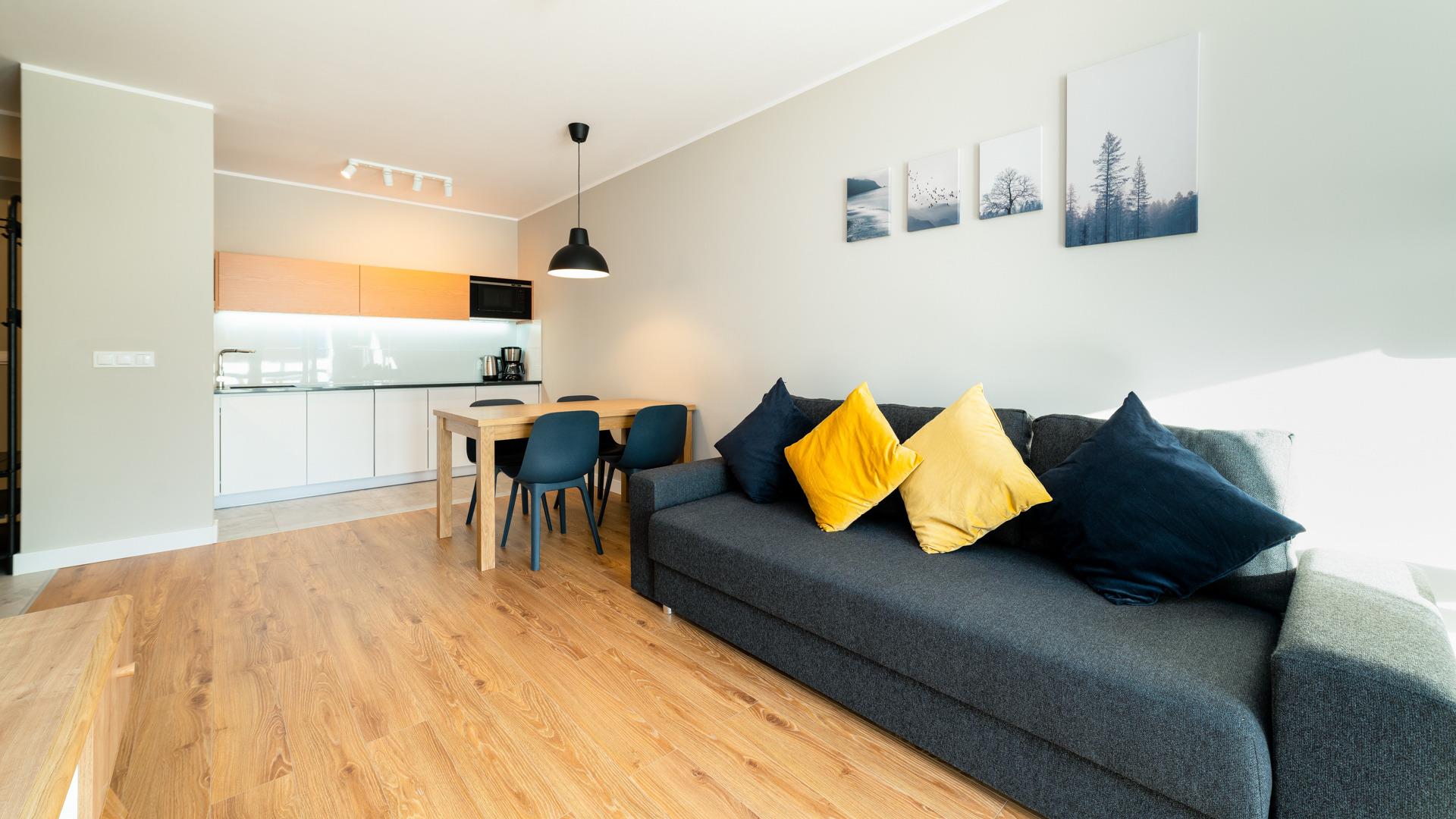 Zu den gewählten Apartments darf man mit dem Hund ankommen. Die zusätzlichen Kosten des Aufenthalts mit einem vierbeinigen Freund betragen 100 PLN (Einzelgebühr). Die Gäste, die den Aufenthalt mit dem Hund planen, bitten wir um eine frühere Kontaktaufnahme mit unserem Service im lokalen Büro.