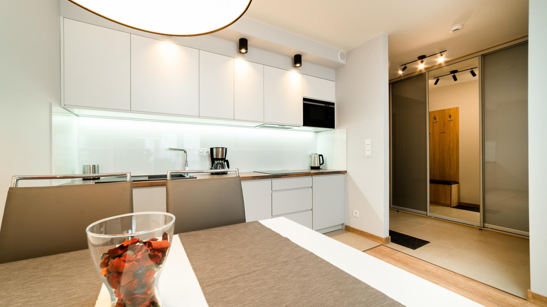 Alle angebotenen Apartments verfügen über eine voll ausgestattete Küchenzeile und ein elegantes Badezimmer mit Dusche.