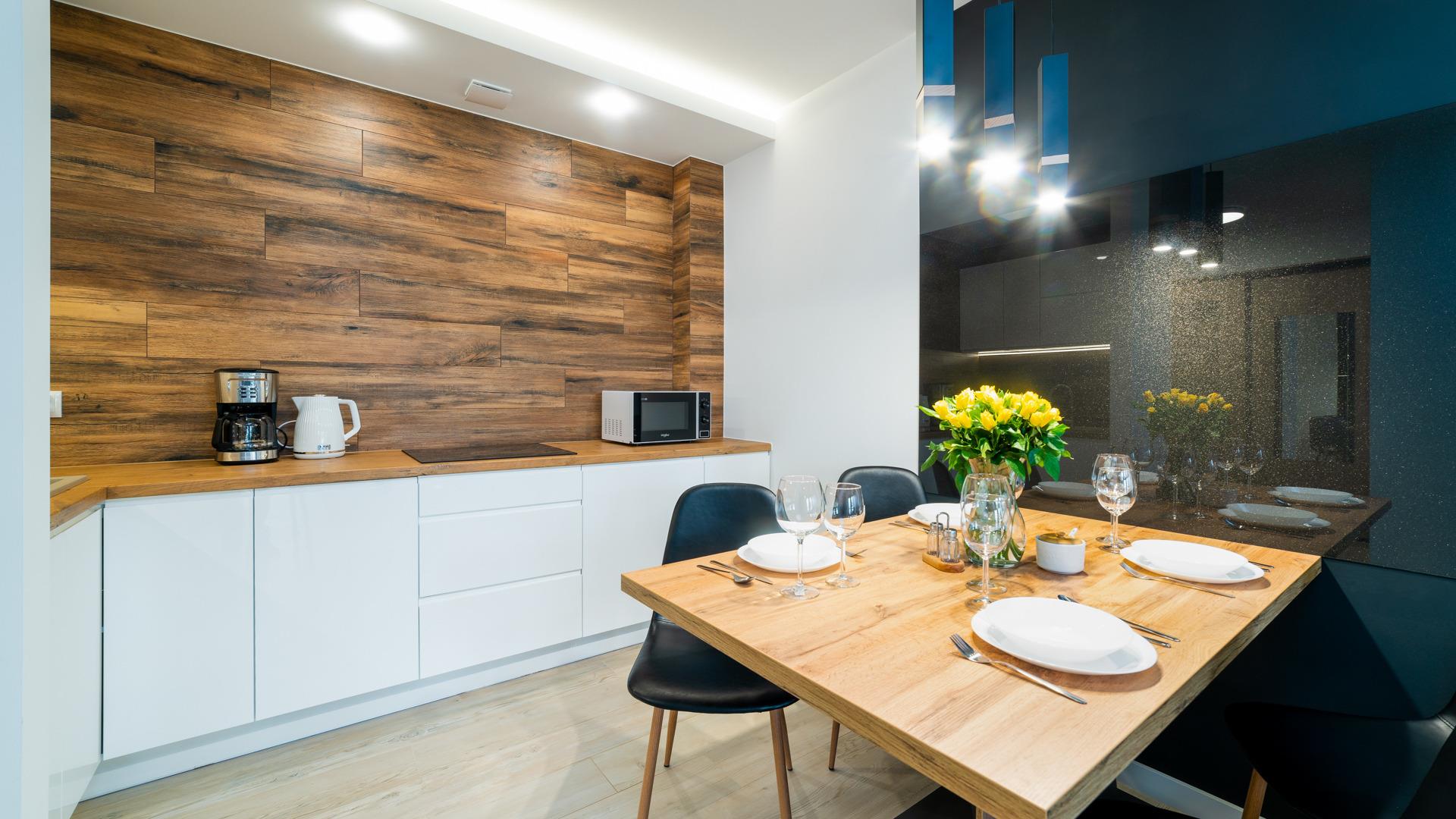 Alle angebotenen Apartments verfügen über eine voll ausgestattete Küchenzeile und ein elegantes Badezimmer mit Dusche.