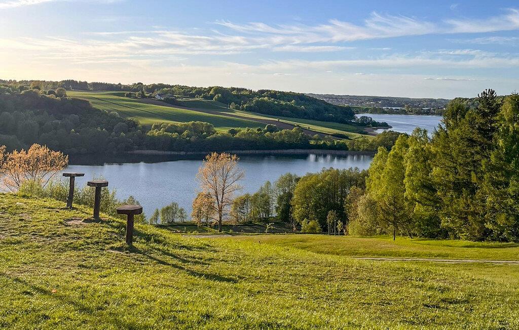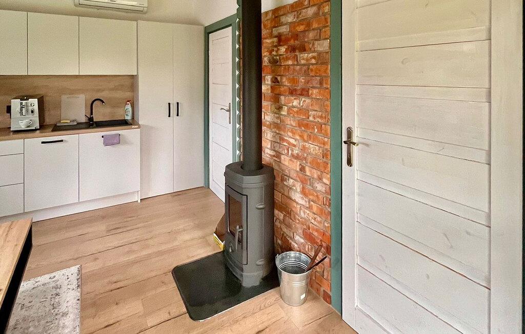 Nyd afslappende dage i dette moderne feriehus nær en sø. Jeres feriehus tilbyder en vidunderlig base for en pause i naturen. Lad den lyse, indbydende atmosfære i dette kompakte hus omslutte jer. Hyg jer sammen i den hyggelige hjørnesofa i stuen. Brændeovnen sørger for behagelig varme på køligere dage og giver rummet en hyggelig atmosfære. Tilbered enkle måltider i tekøkkenet og nyd udsigten over de grønne omgivelser gennem gulv-til-loft-vinduerne. Brug det overdækkede område i den glaserede udestue til rolige timer med udsigt. Husets let hævede beliggenhed giver jer en smuk udsigt over grunden. Gå en tur langs kompleksets velholdte stier eller slap af i de naturlige omgivelser. Oplev området omkring Prokowo og nå Letinc-søen med en kort gåtur. Udforsk de maleriske vandrestier i det kasjubiske Schweiz eller besøg byen Kartuzy med dens klosterkompleks og regionale museum. Tag en tur til udsigtspunktet ved Wiezyca eller tilbring en dag ved Radunskie Górne-søen.