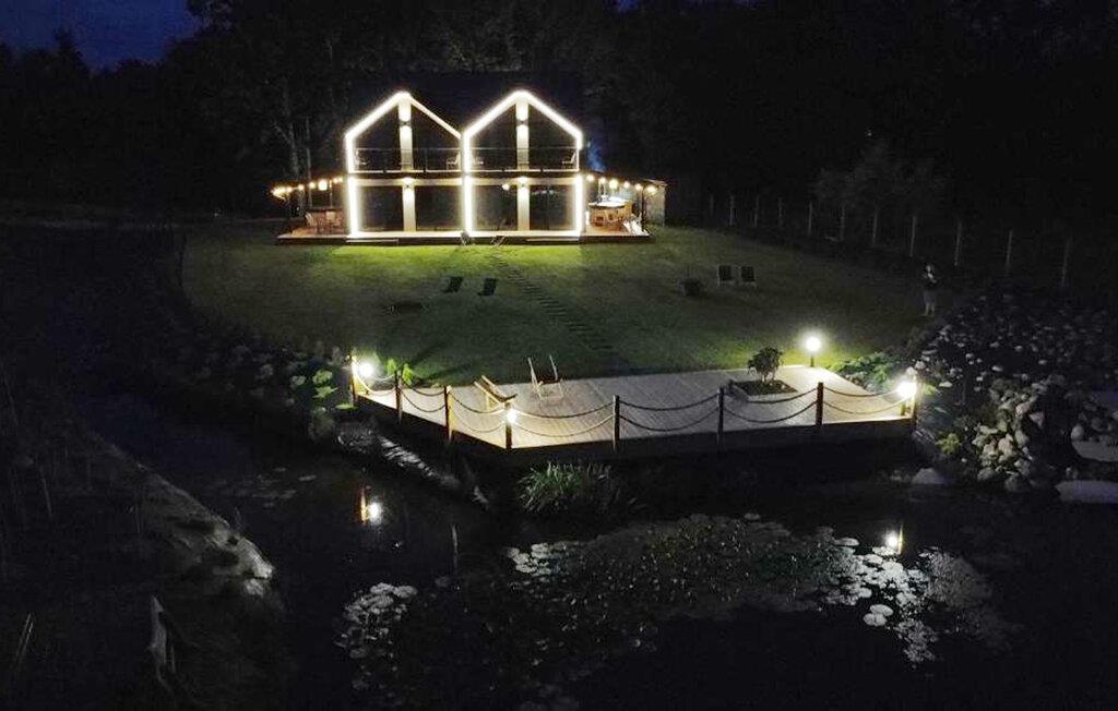 Udforsk den store grund, omgivet af en velplejet græsplæne, planter og små vandløb. Slap af på liggestolene eller brug den rummelige terrasse til stille timer under åben himmel. Træk jer tilbage til det udendørs spabad og nyd et bad med udsigt over det omkringliggende landskab.