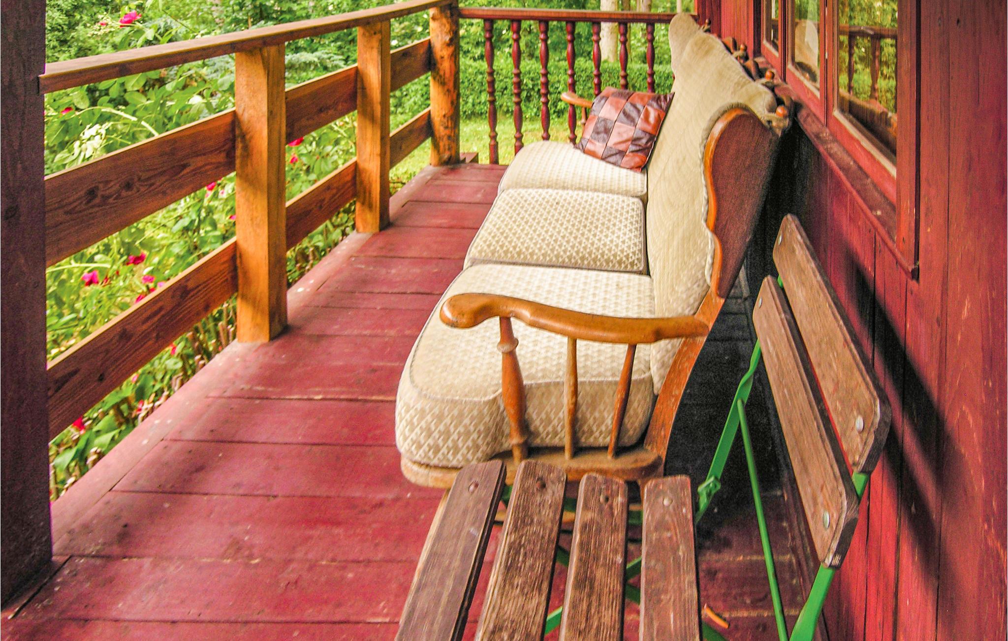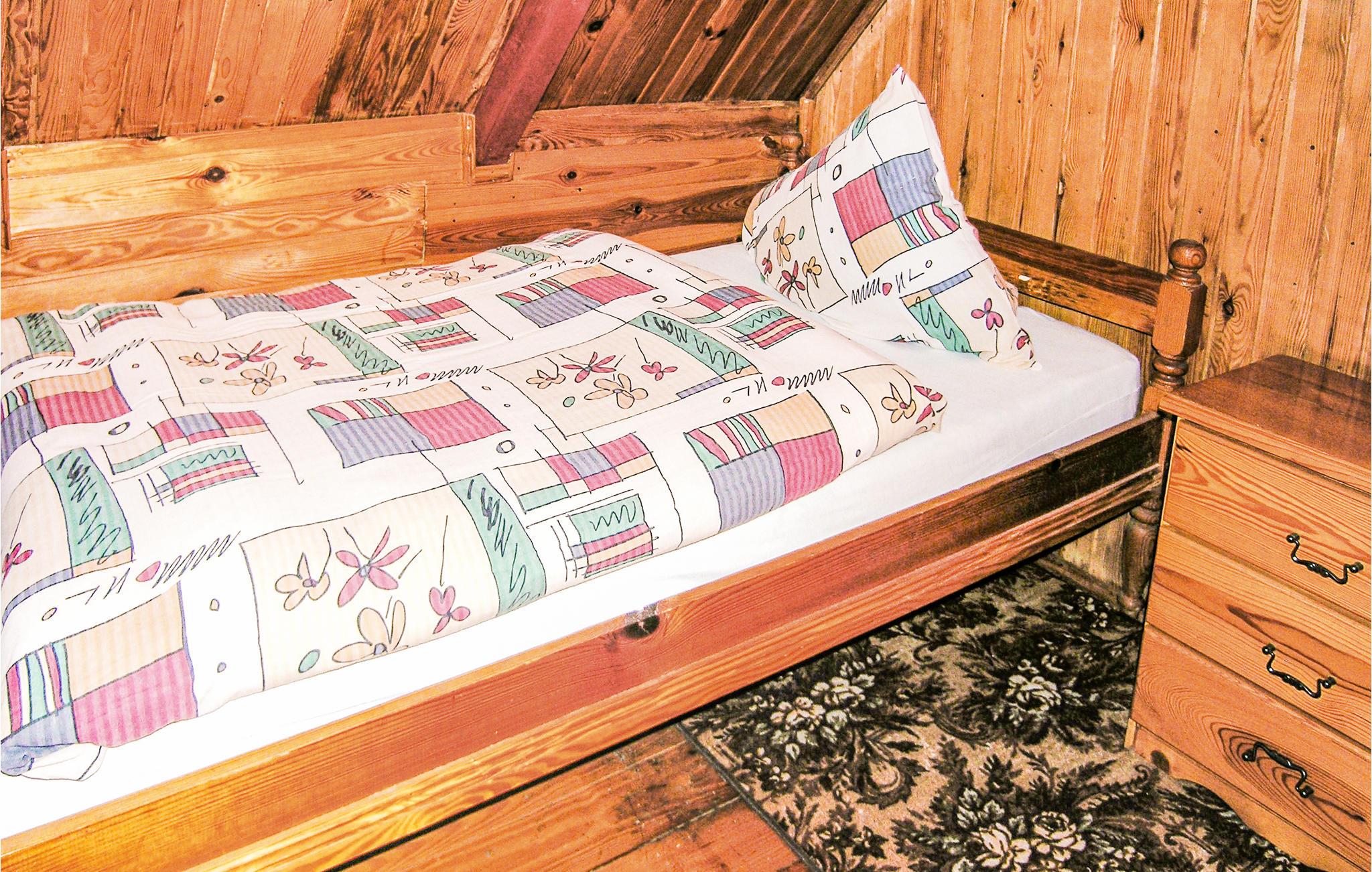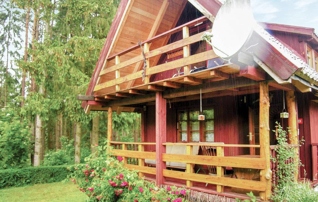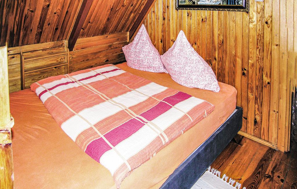 Dette enkle træferiehus ligger i rolige omgivelser og er ideelt for gæster, der ønsker et afslappet ophold omgivet af naturen. find jer til rette i opholdsstuen med blandede møbler, og organiser jeres aftener, som I ønsker. Brug siddeområdet til samtaler eller en simpel middag. Bemærk den stejle trappe, der forbinder de to etager.