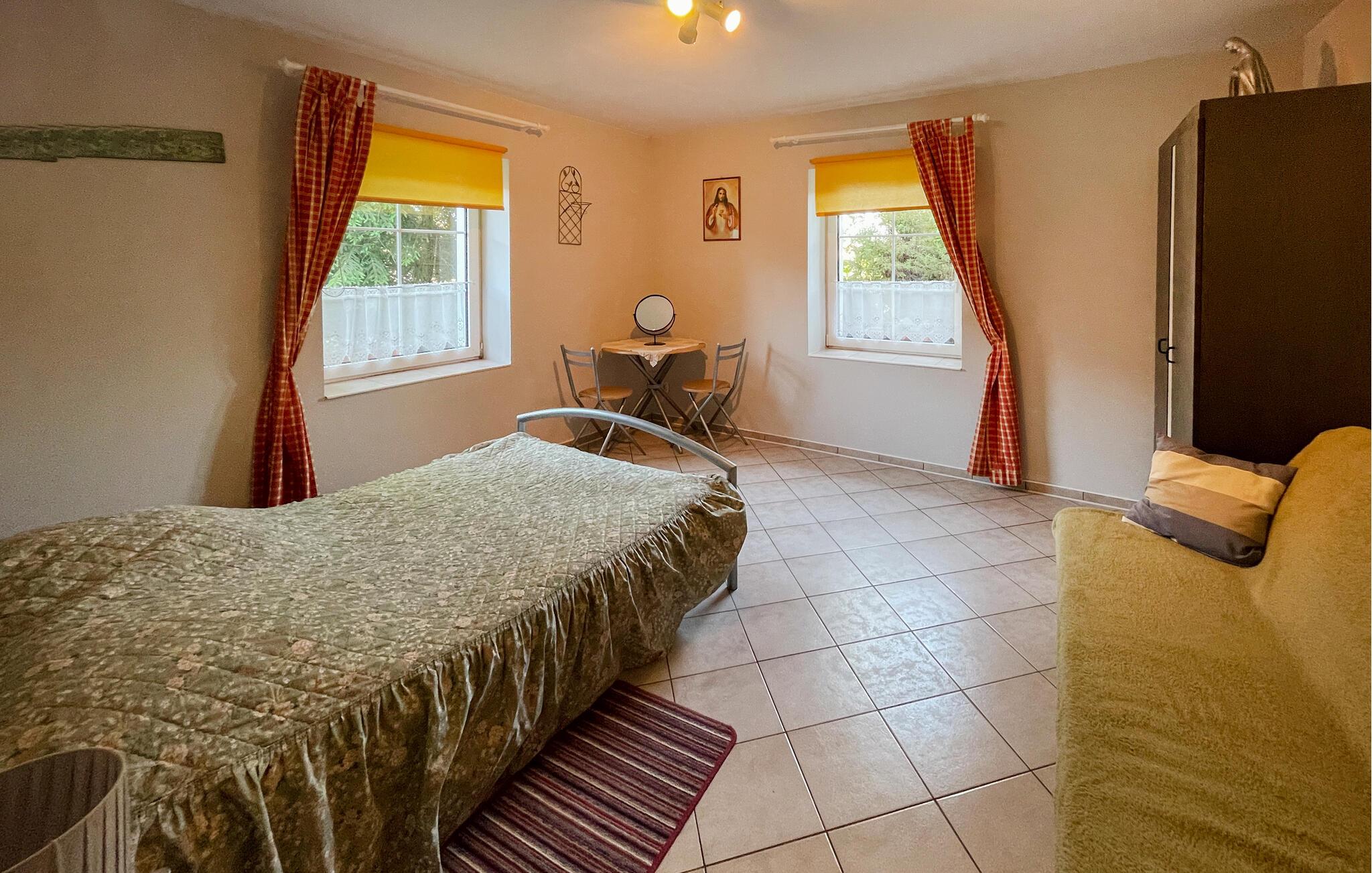 Dette feriehus er placeret på en lukket grund i landsbyen Klebowo. Det er enkelt og praktisk indrettet og giver jer alt, hvad I behøver for en dejlig ferie. Efter en aktiv dag kan I hygge jer sammen ved pejsen og lægge planer for den næste dag, mens flammerne knitrer.