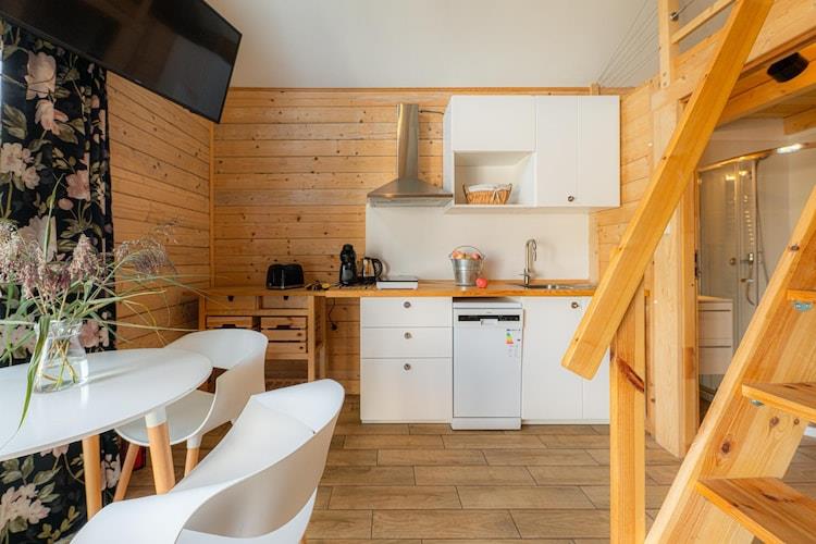 En af de smukkeste dele af det nordlige Polen - landsbyen Klepnica, beliggende blandt skove og søer. Lige i vandkanten, i en stille zone. Rolige, maleriske omgivelser, perfekt til at slappe af. For dem, der kan lide aktiv rekreation og sightseeing - en god base. Træferiehus på indhegnet privat grund, 30 m fra bredden af en klar sø. I stueetagen er der stue med tekøkken, soveværelse med dobbeltseng og badeværelse med bruser. På mezzaninen er der endnu et soveværelse (2 enkeltsenge og TV). Udsigten fra mezzaninen af de smukke solopgange er betagende. Der er en terrasse med et sæt havemøbler, liggestole og grilludstyr. Der er en privat fiske- og rekreationsmole ved bredden af søen. Der er en stige, du kan svømme. Den nærmeste strand ligger 100 m væk. En robåd er gratis tilgængelig (tilgængelig for gæster fra 2 nabohuse). Der er sikker parkering. Prisen for opholdet inkluderer: sengelinned, håndklæder, turistskat, parkering. Barneseng til rådighed på anmodning. De smukke omgivelser giver gode muligheder for at bruge fritiden aktivt. Søer rige på fisk og skove fyldt med svampe giver mange muligheder for at slappe af udendørs, væk fra byens stress og jag. Blandt skovene og markerne er der mange veje ideelle til cykling. Der er også kajakture på Rega-floden i området. Det populære feriested Kolobrzeg ved Østersøen ligger cirka 50 km væk. Der er et vandland i Swidwin, 25 km derfra. Den nærmeste by (Lobez) ligger ca. 12 km væk. Du kan svømme og fiske i Klepnicko-søen, hvis du har et fiskekort (polsk eller udenlandsk).