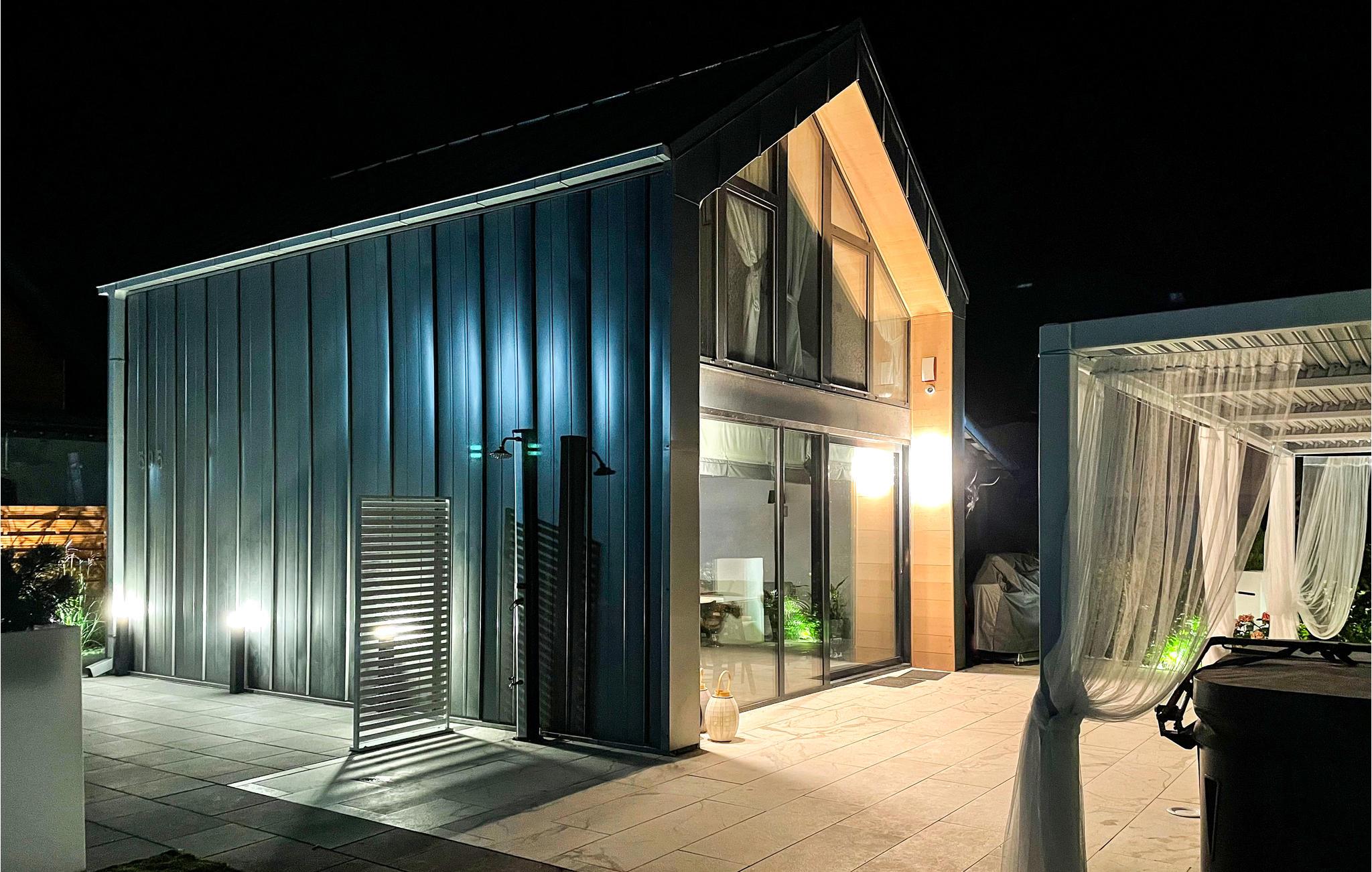 Ankom her med familien og føl jer hjemme i jeres private oase af velvære. Det udsøgte udvalg af møbler og indretning af høj kvalitet skaber en fantastisk atmosfære, som I kan nyde. Det skønne hus strækker sig over to etager og åbner ud til haven med en komplet vinduesfront. Dette giver jer mulighed for at nyde mange timers naturligt lys i næsten alle rum. I kan også opdage den skønt anlagte have, som lægger op til at slappe af og blive hængende. I kan opleve jeres personlige wellness-program i spabadet og afslutte de milde sommeraftener med grillretter.