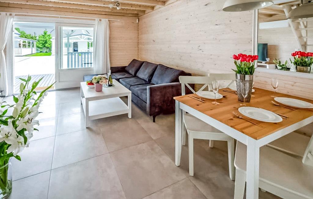 På den idylliske ø direkte ved den tyske grænse til Usedom finder I dette indbydende feriehus, som er praktisk indrettet men meget hyggeligt takket være de stemningsfulde trævægge- og lofter. Tag en dukkert i fællespoolen om morgenen og nyd jeres morgenmad på terrassen. I har både sandstrand og en sø tæt på, så her er bade- og fiskemulighederne rigtigt gode. I kan leje cykler lige ved huset, så I nemt kan udforske øen, som bl.a. byder på et roligt skovområde. Er I til golf, ligger der en golfbane 2 km fra huset.