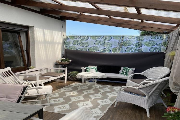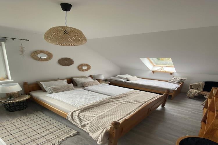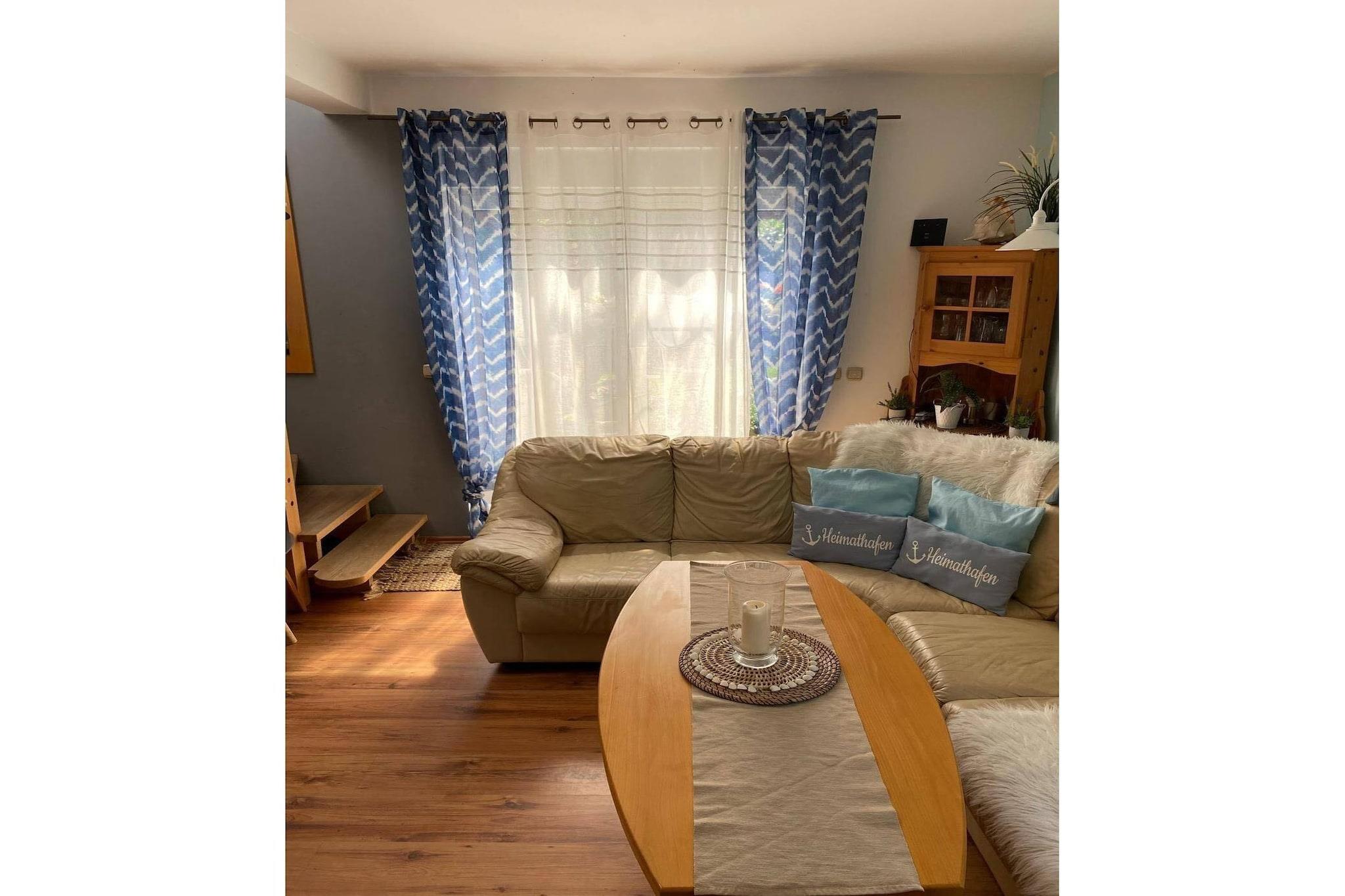 Stueetage: (Stue(Fjernsyn(Tyske TV-kanaler), spisebord, pejs, sofahjørne), åbent køkken(elkedel, cooker, brødrister, emhætte, espressomaskine, ovn, mikrobølgeovn, opvaskemaskine , køle-fryseskab, Blender, elektriske kogeplader), soveværelse(dobbeltseng), badeværelse(badekar, håndvask, toilet), veranda) På 1. etage: (soveværelse(enkeltseng, dobbeltseng), soveværelse(enkeltseng, dobbeltseng), badeværelse(bruser, håndvask, toilet), badeværelse(bruser, håndvask, toilet)) Internetadgang, have(privat, indhegnet, anlagt have, 600 m2), havemøbler, solstole, grill, parkering, Parasol, legeredskaber, bordtennisbord, hængekøje