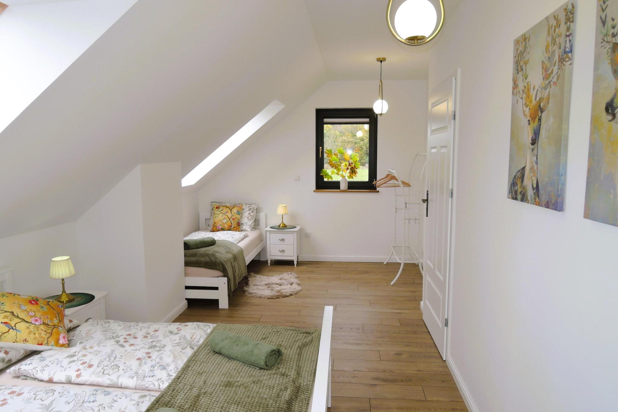 Vi tilbyder et komfortabelt og moderne feriehus, ideelt til 4-6 personer. I stueetagen finder I et rummeligt, fuldt udstyret køkken, en hyggelig stue og et funktionelt badeværelse. På første sal tilbyder to hyggelige soveværelser et behageligt ophold. Ejendommen er omgivet af en stor, velholdt have. Gæsterne har adgang til havemøbler, grill og parkering til to biler. Hele ejendommen er indhegnet, hvilket sikrer privatliv og sikkerhed. Omgivelserne er fredelige og rolige, hvilket gør dette til det perfekte sted at slappe af og koble fra. Vi byder også dine firbenede venner velkommen - din hund eller kat er velkommen! Kolczewo er en charmerende by på Wolin-øen, omgivet af maleriske skove og strande, der glæder enhver naturelsker. Det er det perfekte sted for en afslappende ferie væk fra byens travlhed, hvor du kan nyde freden og roen. Kolczewo tilbyder adskillige attraktioner, såsom smukke strande, cykelstier og muligheder for aktiv fritid i den fri natur.
