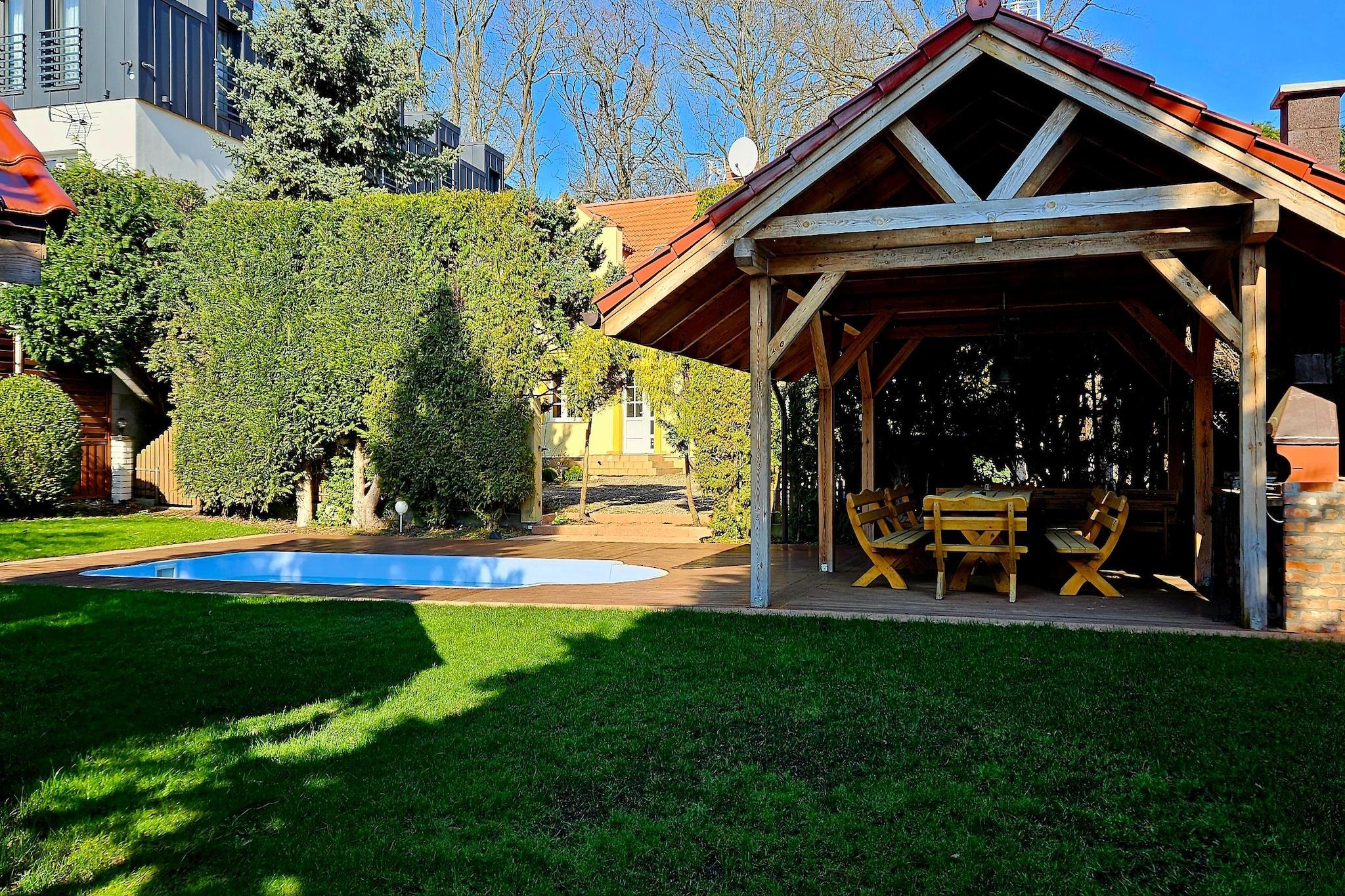 Stort sommerhus med god plads til en ferie med familie eller venner. En stor have inviterer dig til at slappe af, lege eller grille og på varme sommerdage kan du køle af i den private udendørs pool. Du når en sø på kun cirka 300 meter - her kan du nyde roen og fiske. Den lille landsby Kolczewo ligger midt på øen Wollin, lige ved søen Kolzower og kun tre kilometer fra Østersøens strande. Her kan du nyde naturens ro, men alligevel kan du hurtigt nå de livlige feriesteder ved Østersøen. Regelmæssige busser tager dig også komfortabelt til byerne Kolberg eller Swinoujscie, og om sommeren kører de endda ret ofte. Detaljer: Forbrugsbaserede energiomkostninger, sengelinned, håndklæder, slutrengøring, WiFi, turistskat Aktiviteter i nærheden: Meget af Wolin Island er beskyttet som en nationalpark. Her kan du lave smukke vandre- og cykelture. Strandhavfruer og badeentusiaster vil finde deres lykke i Misdroy, en af de smukkeste badebyer på den polske kyst. Nationalparkmuseet ligger også der. Et besøg i bisonindhegningen er spændende for hele familien Ikke egnet til personer med nedsat mobilitet