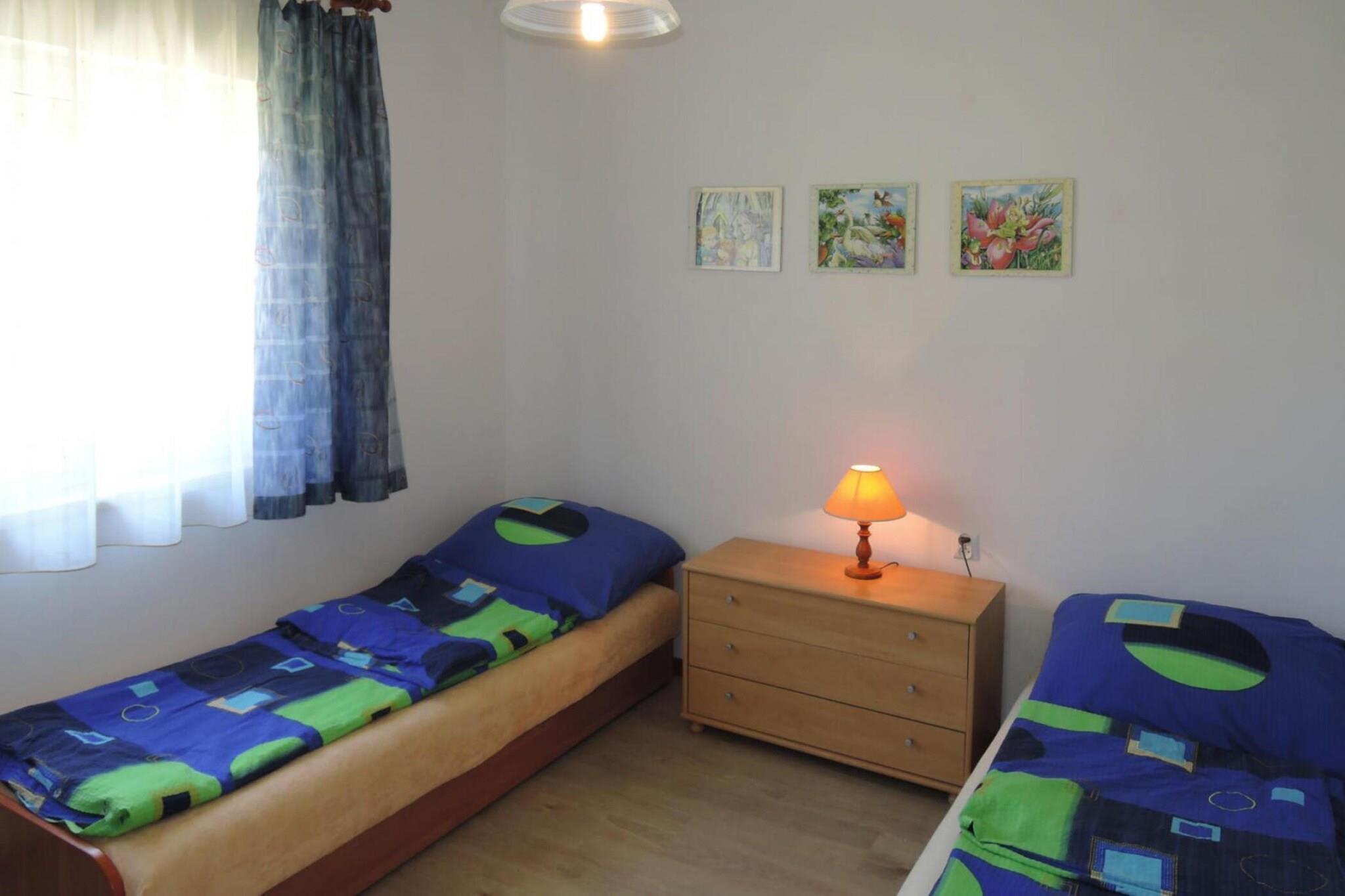 Dobbelthus renoveret i 2019 i Kolczewo, kun 1 km fra badesøen Kolczewskie og 3 km fra Østersøen. Indkvarteringen er ideel for dem, der søger ro og naturelskere eller familier med børn. Den fælles have byder på masser af plads, og der er en legeplads ved siden af huset. Det er et rigtig godt udgangspunkt for udflugter til havet og landskabet. Den 60 kvadratmeter store ejendom ligger i stueplan og rummer stue, soveværelse, spisestue, åbent køkken, to soveværelser og brusebad samt overdækket terrasse. Ikke egnet til personer med nedsat mobilitet