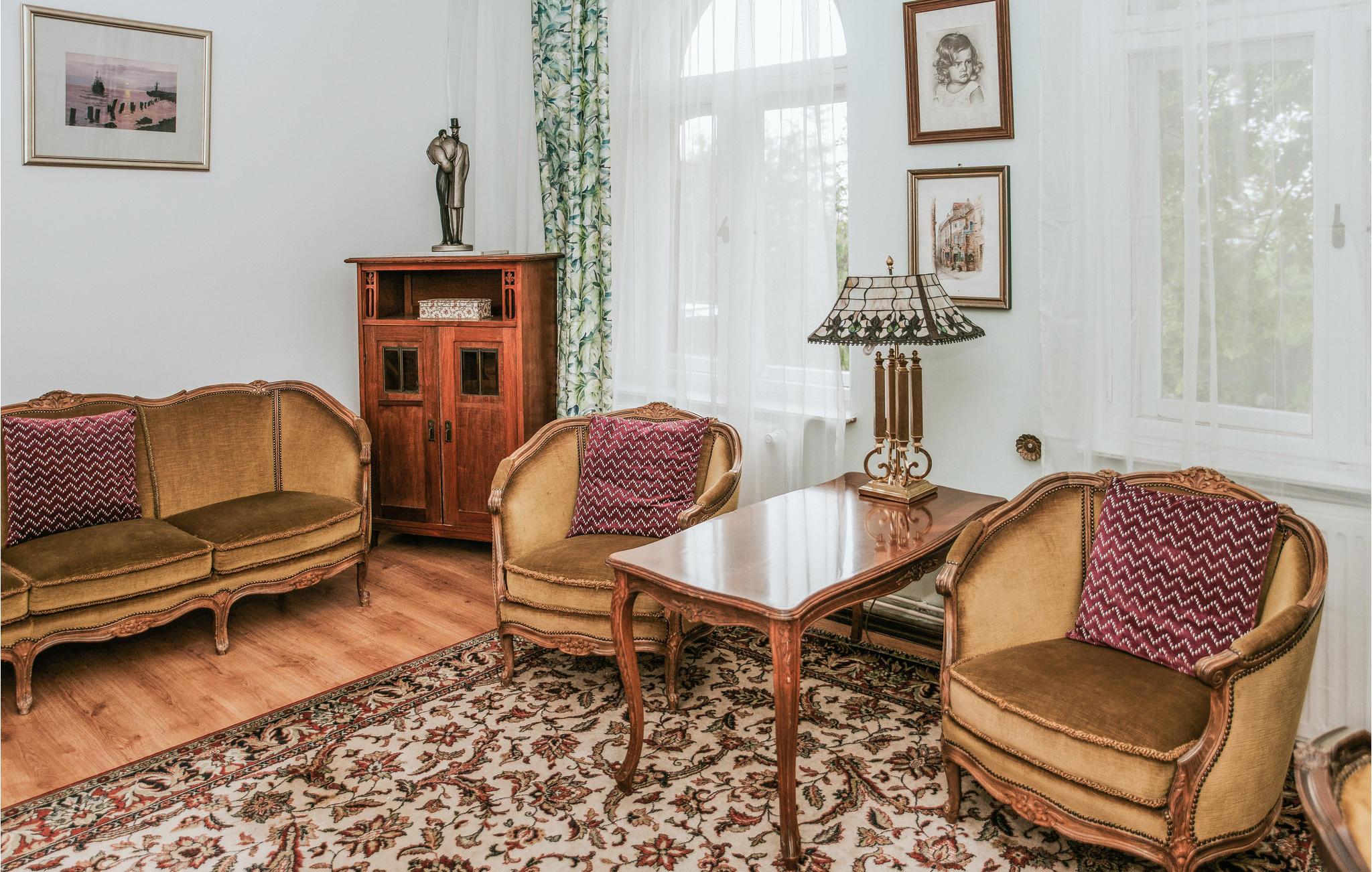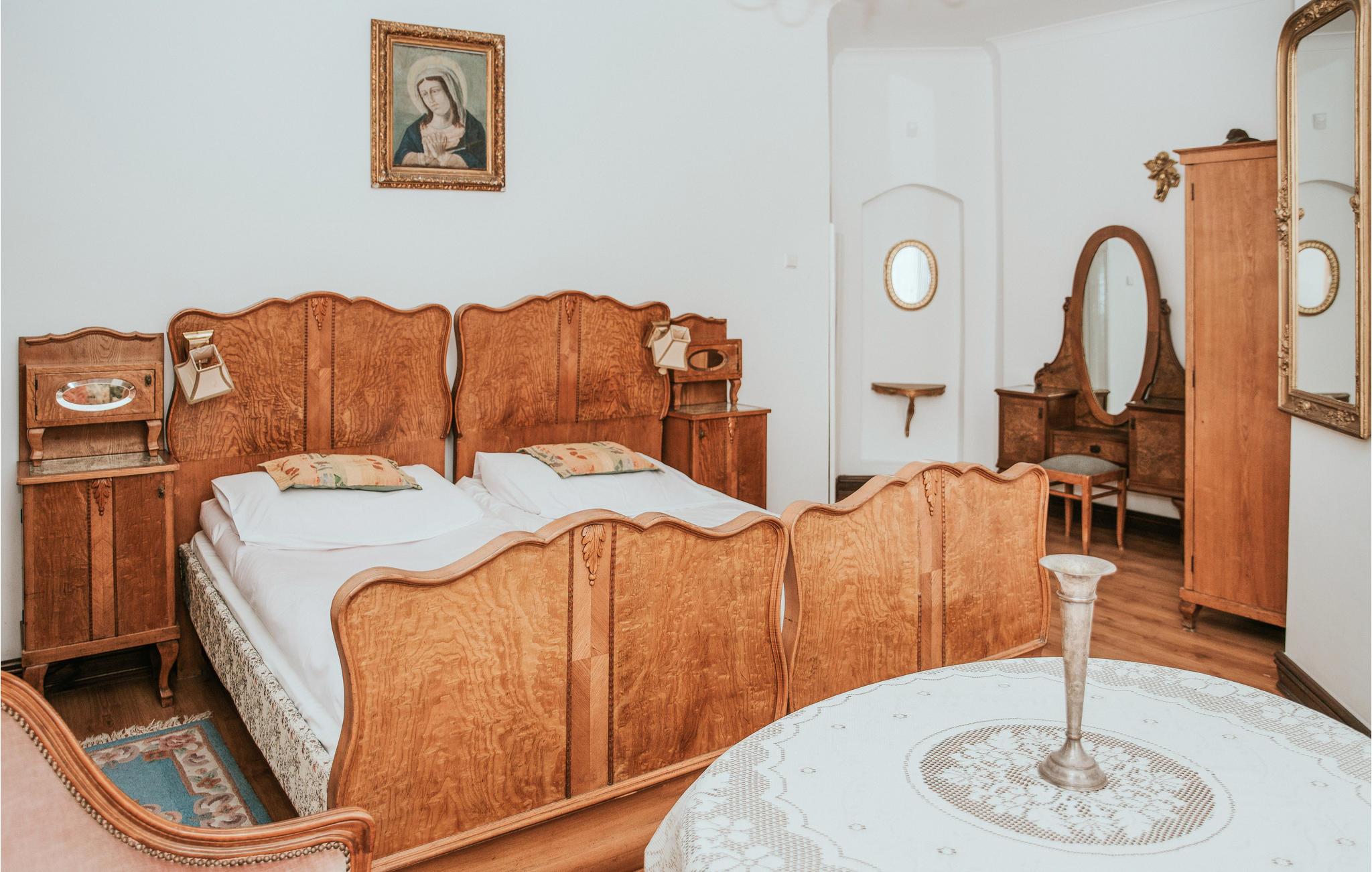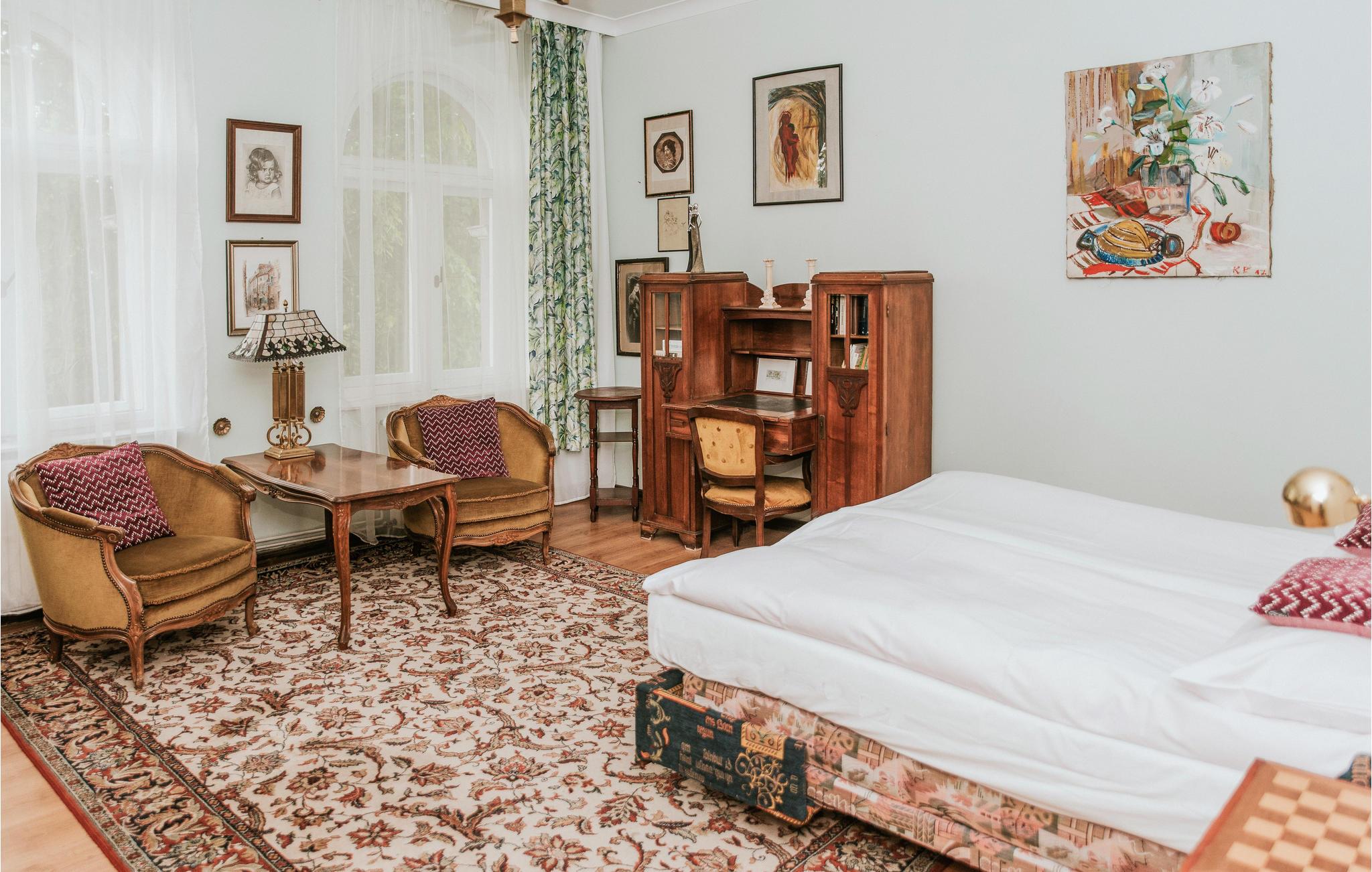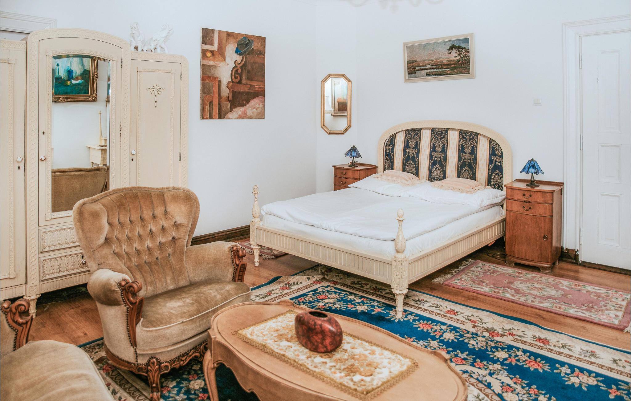 Denne indbydende lejlighed byder velkommen i en smuk beliggenhed i en gammel bygning på fælles grund. Feriestedet er perfekt til to familier, der rejser sammen eller en gruppe venner. Værelserne får deres særlige charme fra de markante møbler i gammeldags elegant stil, de varme farver, mange søde detaljer, træelementer, store vinduer og skønne gardiner. Her føles det, som om I rejser tilbage i tiden. Snak under lysekronen, mens I nyder god mad eller nyd en lækker grillmiddagmad på den åbne terrasse. I kan se solnedgangen fra balkonen.
