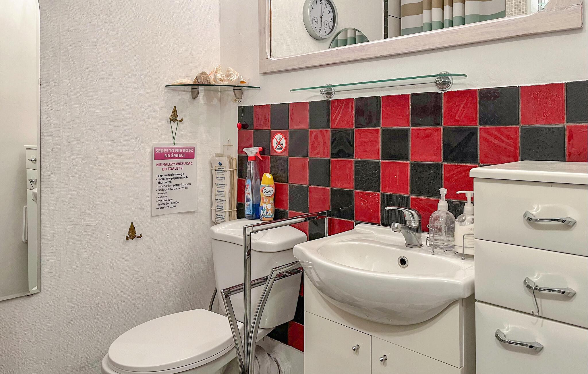 Badeværelse (nr. 1) - WC. Varmt og koldt vand. Bruser
