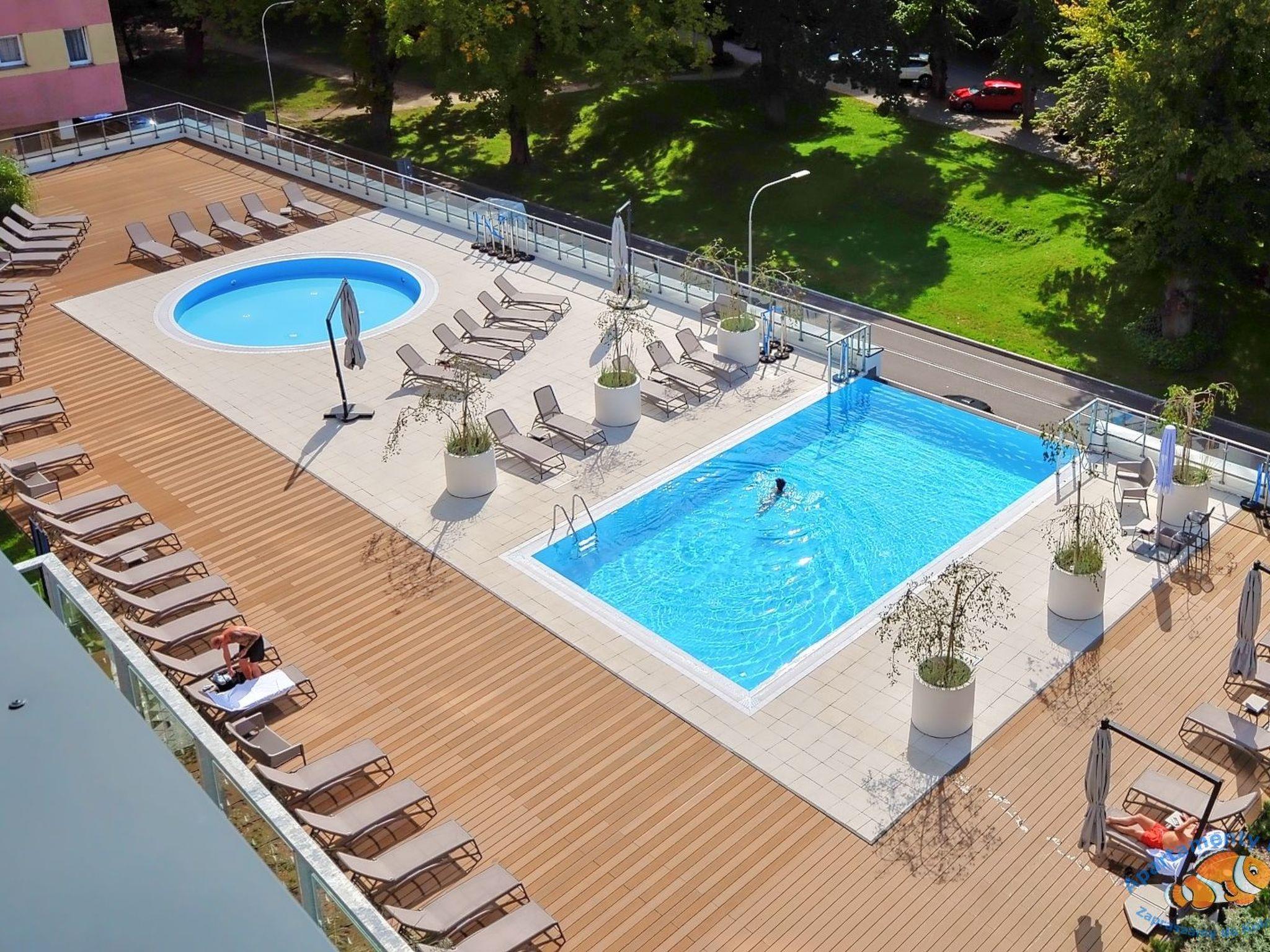 The seaside complex in which the flat is located offers extensive recreational facilities. Guests can enjoy both the indoor pool, sauna, well-equipped gym and outdoor activities such as the infinity pool and children's paddling pool. The complex is surrounded by beautiful terraces overlooking the harbour and seaside park, providing space to relax and enjoy the picturesque scenery.