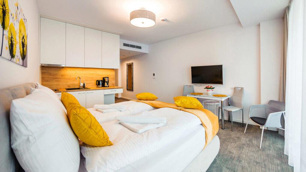 • Die Apartments sind mit Bettwäsche und Handtüchern ausgestattet.