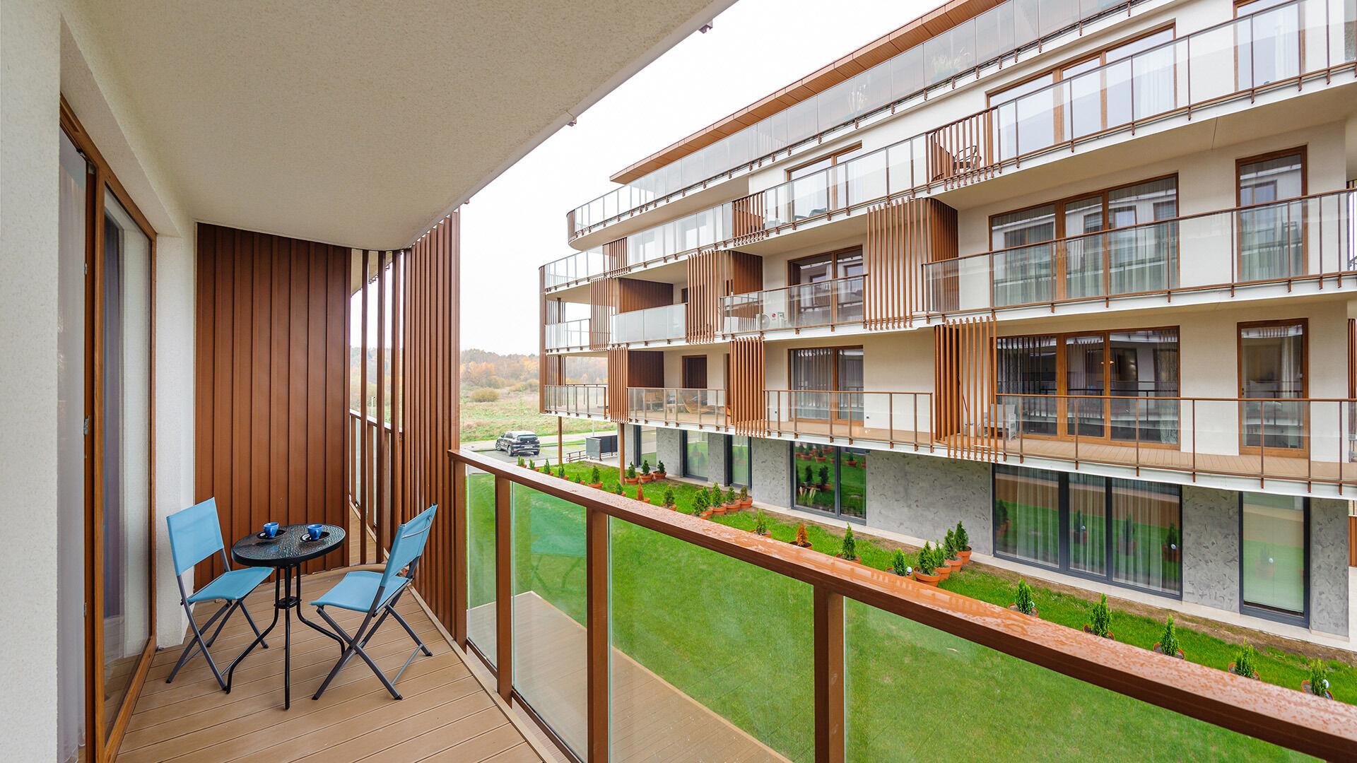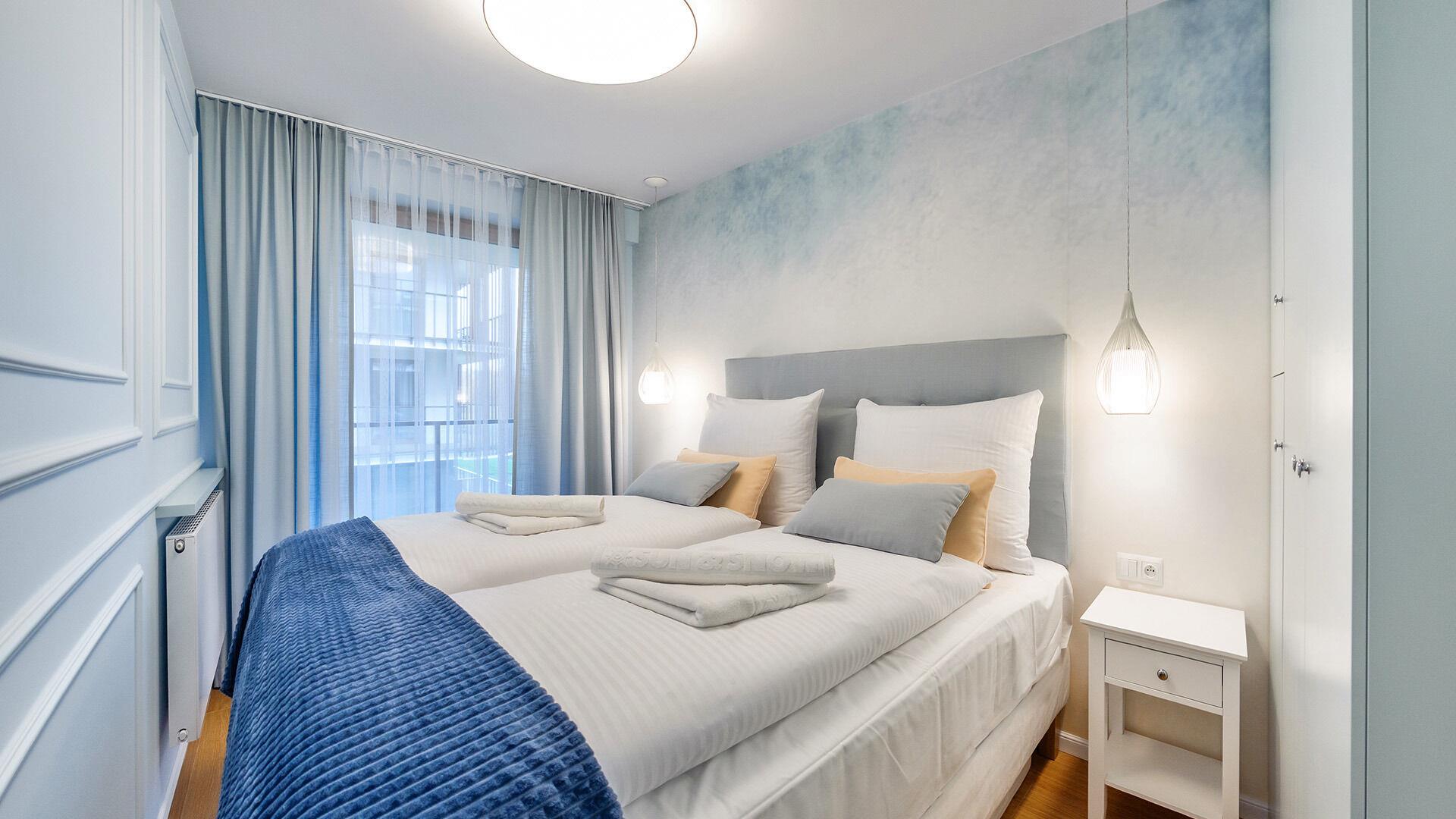 Die Apartments im Resorts Kolobrzeg liegen im ruhigen, westlichen Teil der Stadt, umgeben vom NATURA-2000-Park und nur wenige Minuten vom breiten Weststrand sowie einem Hundestrand entfernt. Die Lage bietet saubere Luft, direkten Kontakt zur Natur und Zugang zu Rad- und Spazierwegen. Die Apartments sind hochwertig ausgestattet und verfügen über voll ausgestattete Küchenzeilen sowie große Terrassen. Auf dem Gelände stehen nummerierte Außenparkplätze und Tiefgaragenplätze gegen Aufpreis zur Verfügung, zudem gibt es einen öffentlichen, kostenpflichtigen Parkplatz vor dem Gebäude. Gästen stehen ein täglich geöffneter Pool sowie eine Sauna zur Verfügung. Kolobrzeg bietet das ganze Jahr über zahlreiche Freizeit- und Kulturangebote sowie eine vielfältige Gastronomie.