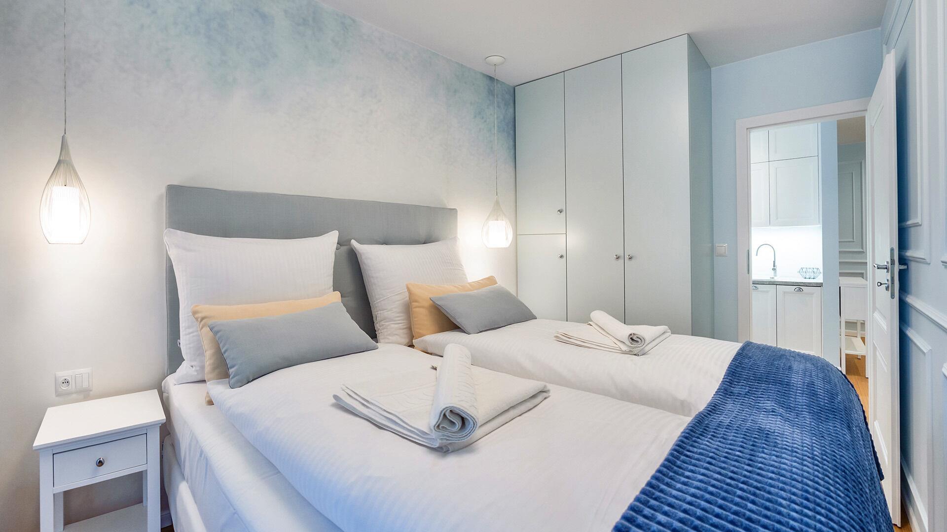 • Haustiere sind in der ausgewählten Wohnung erlaubt. Die Kosten für den Aufenthalt mit einem Haustier betragen 40 PLN pro Tag.