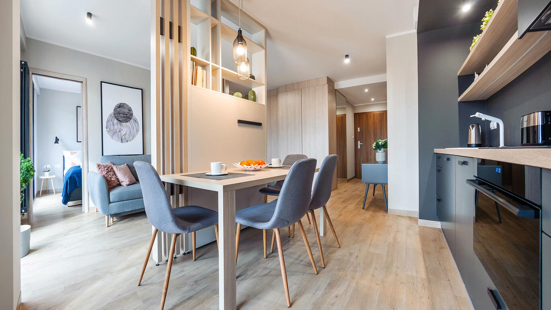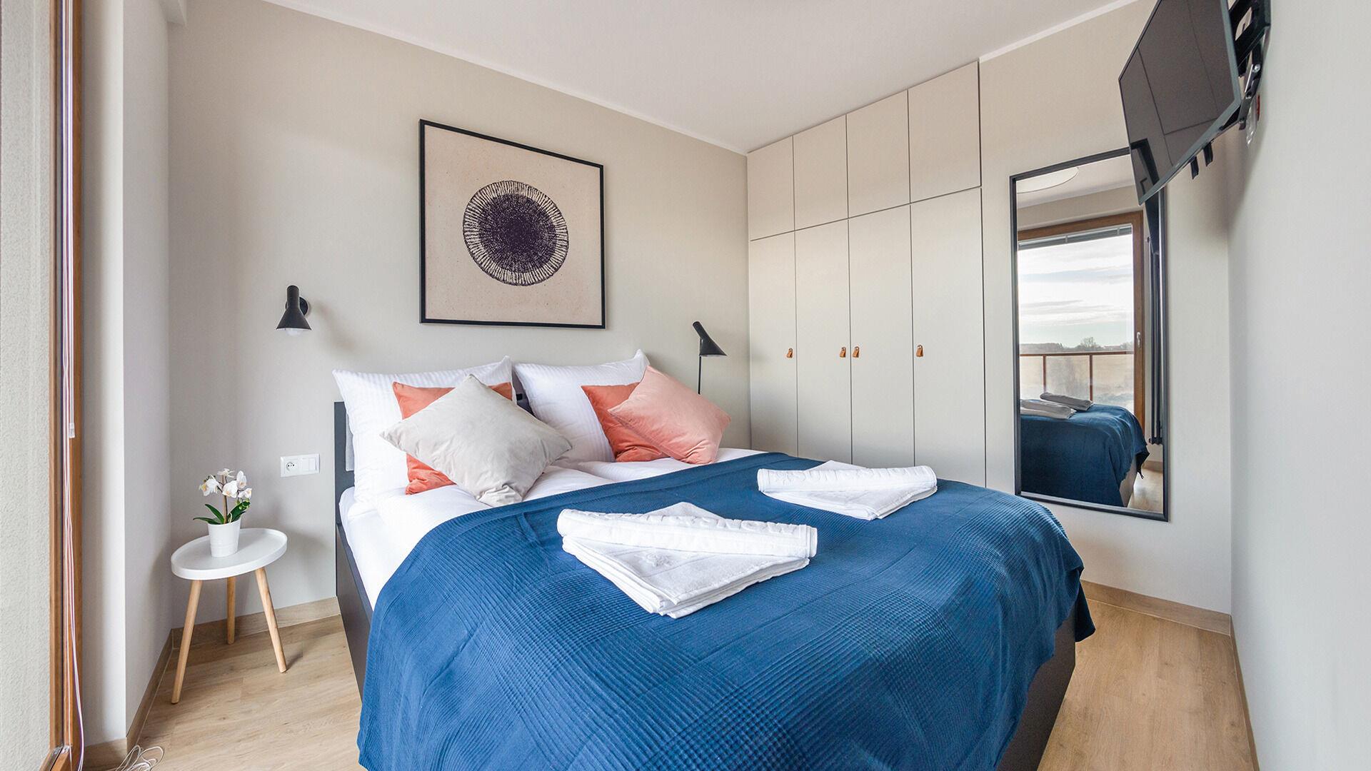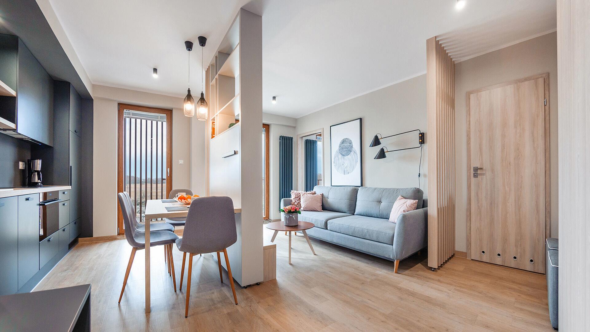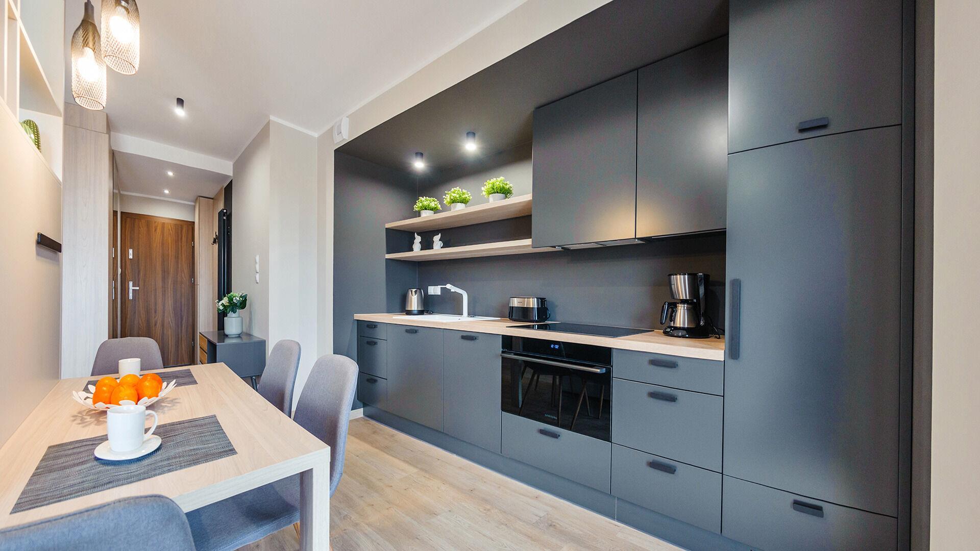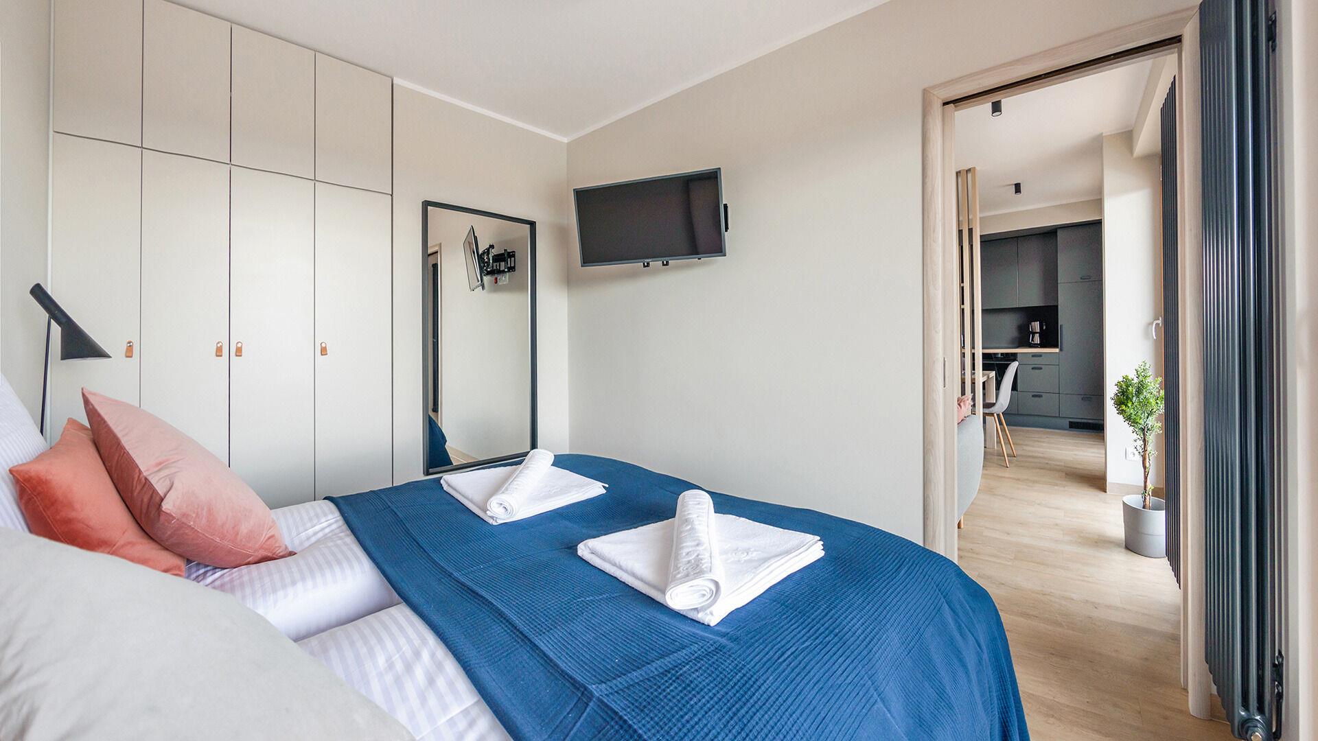 • Haustiere sind in der ausgewählten Wohnung erlaubt. Die Kosten für den Aufenthalt mit einem Haustier betragen 40 PLN pro Tag.