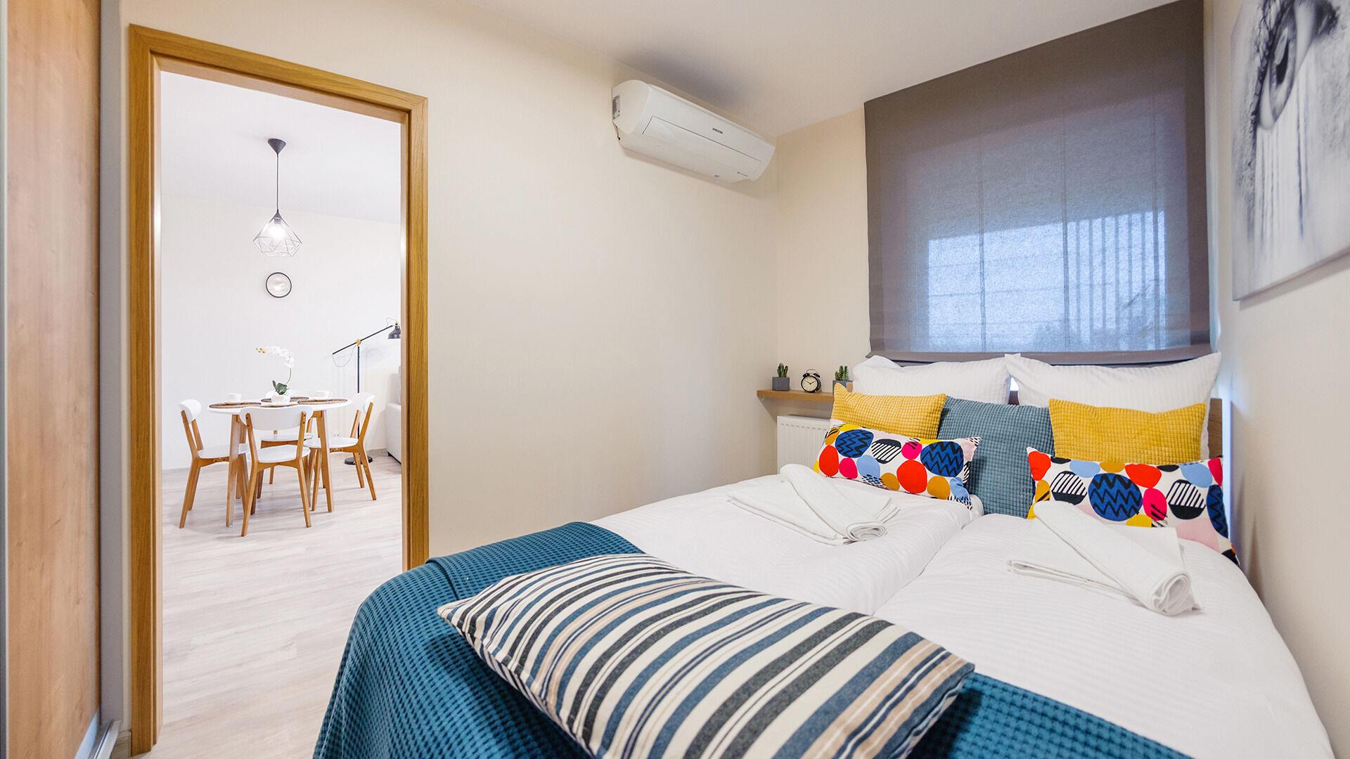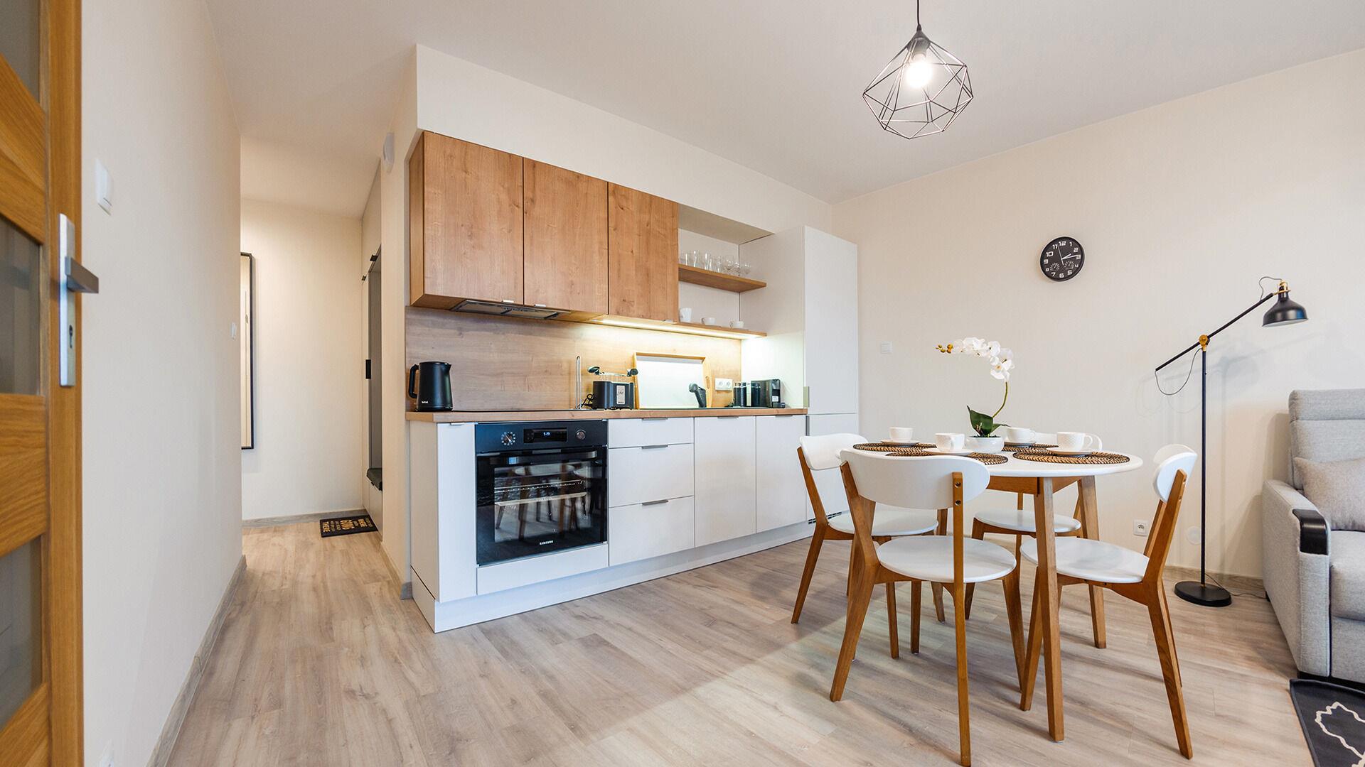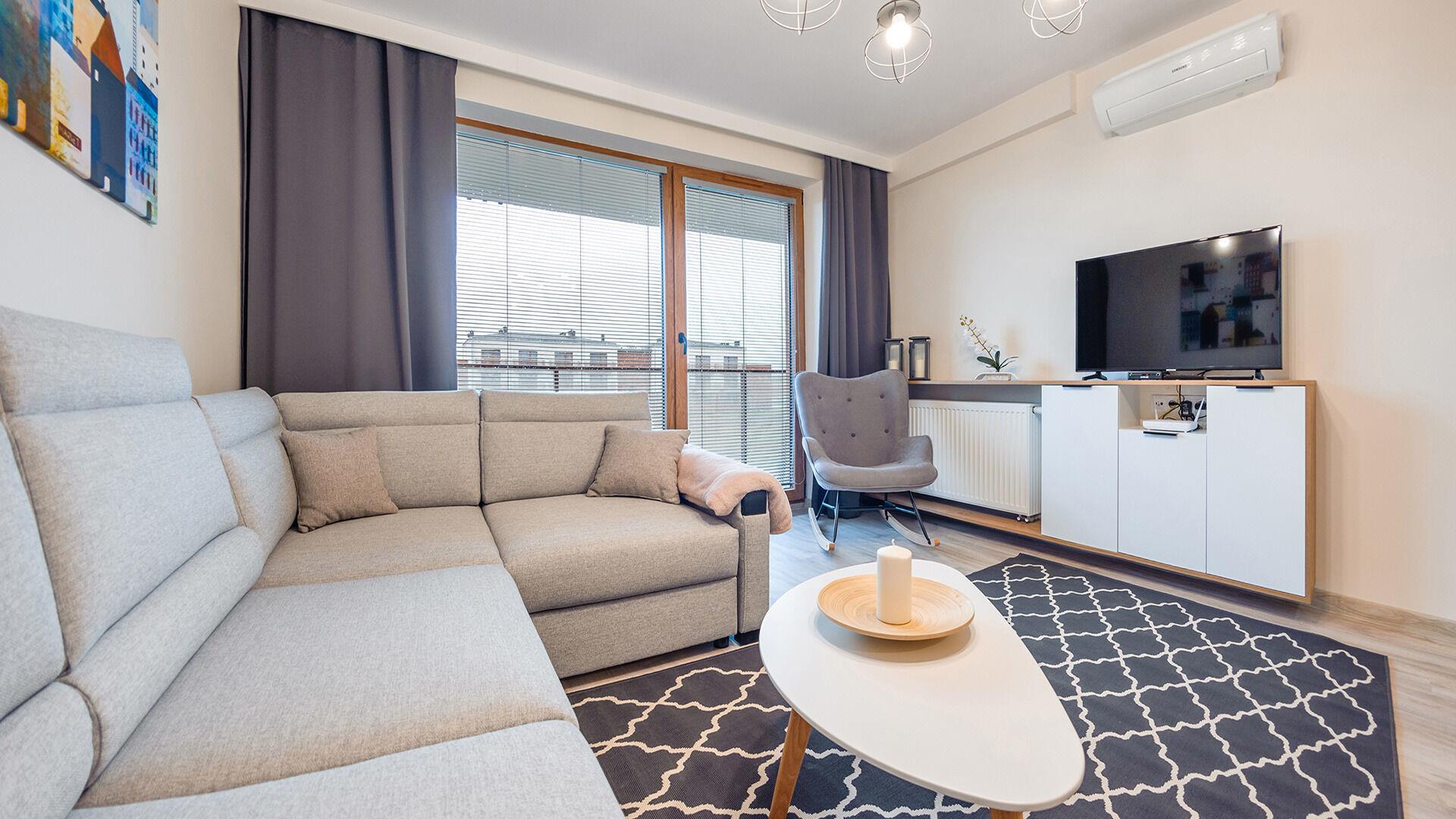 • Haustiere sind in der ausgewählten Wohnung erlaubt. Die Kosten für den Aufenthalt mit einem Haustier betragen 40 PLN pro Tag.