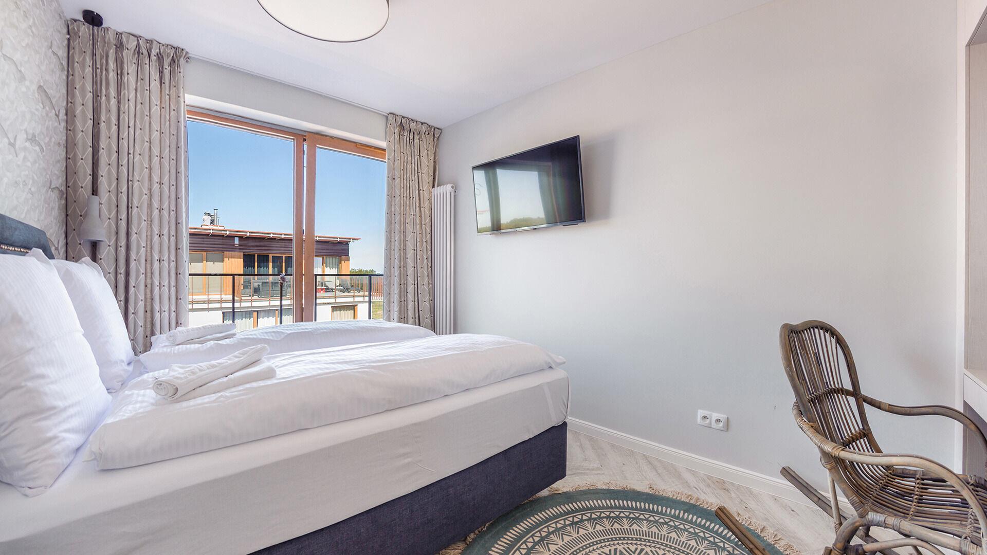 Die Apartments im Resorts Kolobrzeg liegen im ruhigen, westlichen Teil der Stadt, umgeben vom NATURA-2000-Park und nur wenige Minuten vom breiten Weststrand sowie einem Hundestrand entfernt. Die Lage bietet saubere Luft, direkten Kontakt zur Natur und Zugang zu Rad- und Spazierwegen. Die Apartments sind hochwertig ausgestattet und verfügen über voll ausgestattete Küchenzeilen sowie große Terrassen. Auf dem Gelände stehen nummerierte Außenparkplätze und Tiefgaragenplätze gegen Aufpreis zur Verfügung, zudem gibt es einen öffentlichen, kostenpflichtigen Parkplatz vor dem Gebäude. Gästen stehen ein täglich geöffneter Pool sowie eine Sauna zur Verfügung. Kolobrzeg bietet das ganze Jahr über zahlreiche Freizeit- und Kulturangebote sowie eine vielfältige Gastronomie.