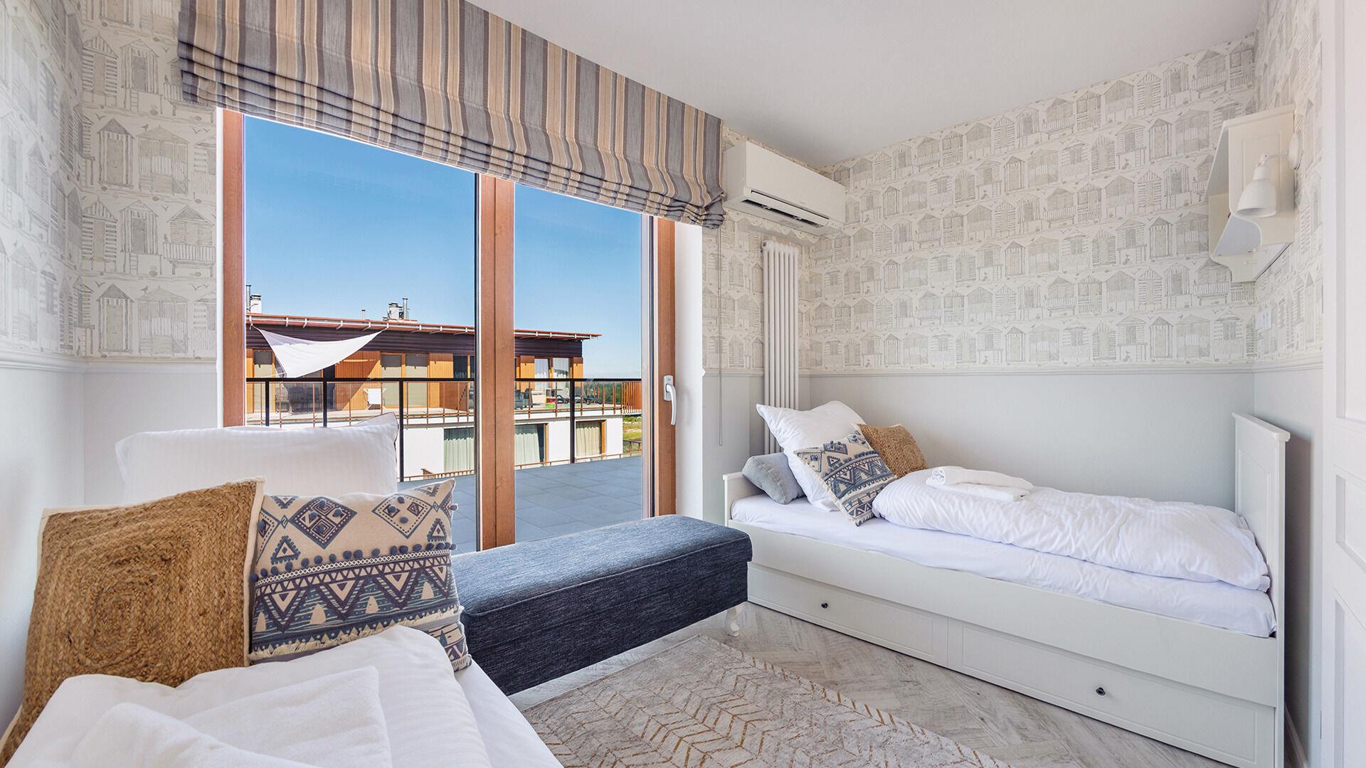 Die Apartments im Objekt Resorts Kolobrzeg befinden sich im westlichen Teil von Kolobrzeg, abseits des städtischen Trubels, umgeben vom Grün des NATURA-2000-Parks. Diese Lage garantiert saubere Luft, malerische Ausblicke und direkten Kontakt zur Natur. Die Plazowa-Straße mit ihren breiten Gehwegen und Radwegen ist ein Teil der R10-Fahrradroute. Ein fünfminütiger Spaziergang über einen direkten Zugang zum Meer reicht aus, um den breiten, sandigen „Weststrand” zu erreichen; ganz in der Nähe befindet sich auch ein Hundestrand. Alle Apartments sind hochwertig ausgestattet und verfügen über funktionale, voll ausgestattete Küchenzeilen sowie geräumige Terrassen mit Blick auf den Innenhof oder das Grün des NATURA-2000-Parks. Vor dem Gebäude gibt es einen öffentlichen, kostenpflichtigen Stadtparkplatz (begrenzte Anzahl an Stellplätzen). Auf dem Gelände stehen ein nummerierter Außenparkplatz sowie Parkplätze in der Tiefgarage zur Verfügung, die den meisten Apartments zugeordnet sind und gegen Aufpreis genutzt werden können. Im Objekt befindet sich ein Schwimmbad, das täglich von 10:00 bis 21:00 Uhr geöffnet ist, sowie eine Sauna, die täglich von 16:00 bis 21:00 Uhr geöffnet ist. Der Pool befindet sich im Gebäude A; aus Gebäude B gibt es keinen direkten Zugang zu Gebäude A.