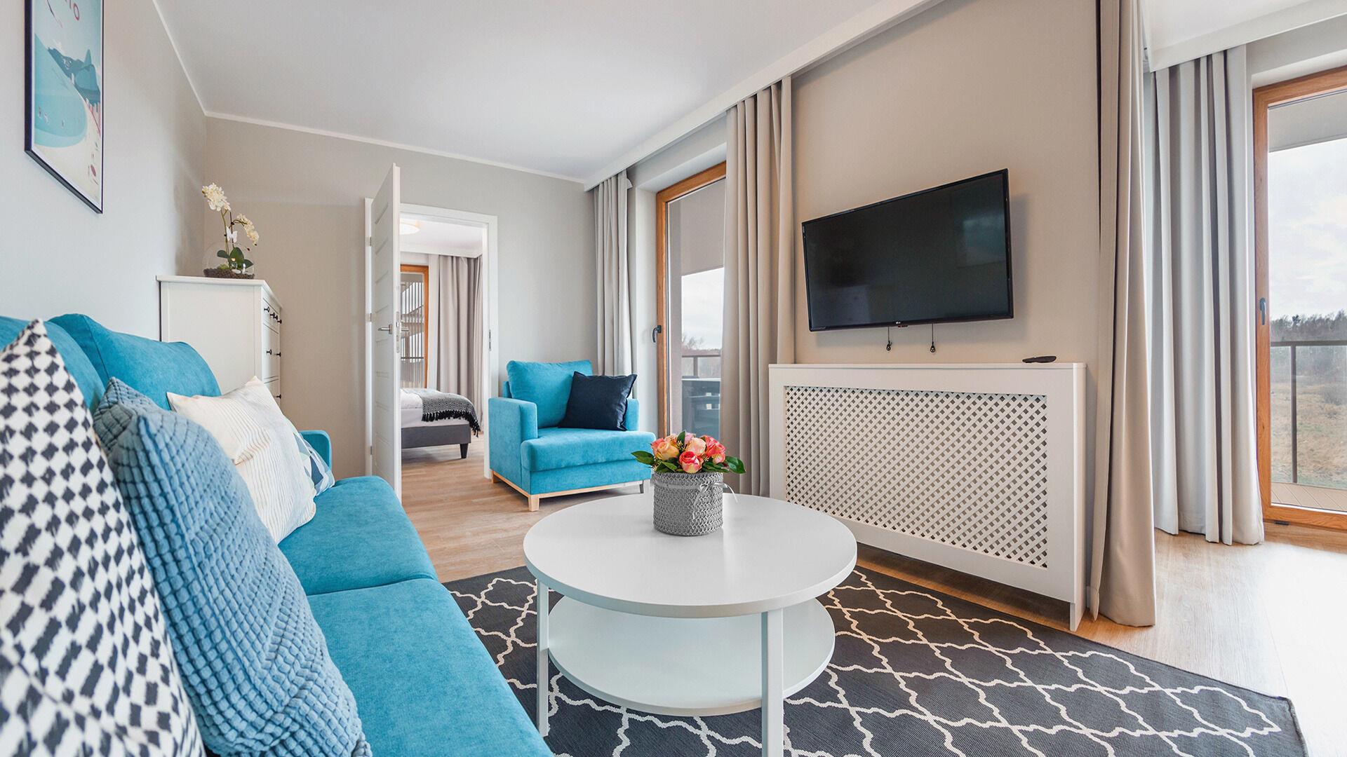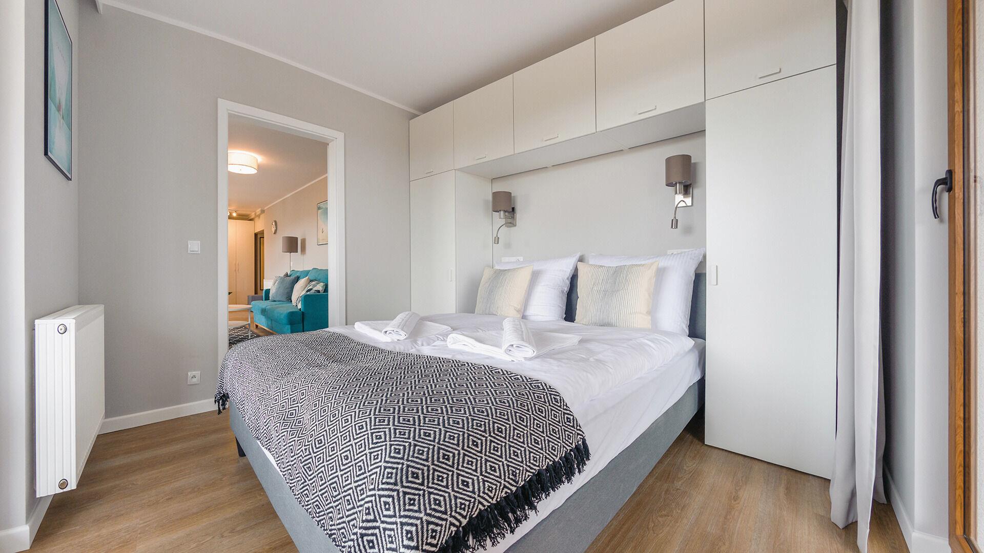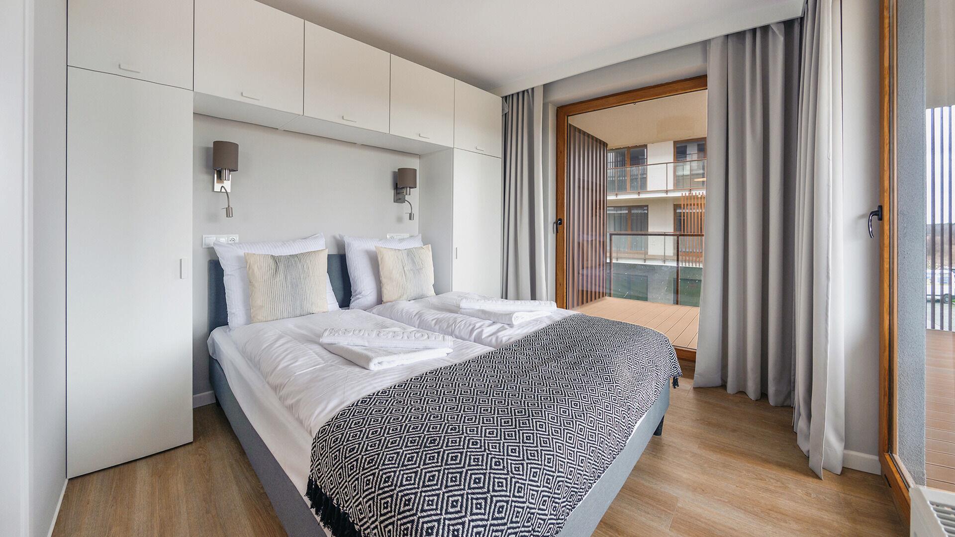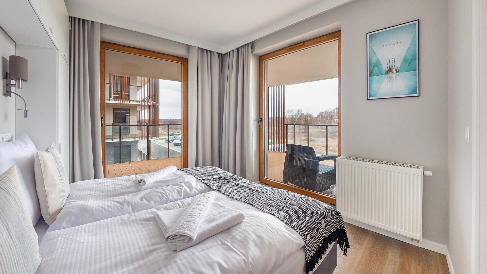 Die Apartments im Resorts Kolobrzeg liegen im ruhigen, westlichen Teil der Stadt, umgeben vom NATURA-2000-Park und nur wenige Minuten vom breiten Weststrand sowie einem Hundestrand entfernt. Die Lage bietet saubere Luft, direkten Kontakt zur Natur und Zugang zu Rad- und Spazierwegen. Die Apartments sind hochwertig ausgestattet und verfügen über voll ausgestattete Küchenzeilen sowie große Terrassen. Auf dem Gelände stehen nummerierte Außenparkplätze und Tiefgaragenplätze gegen Aufpreis zur Verfügung, zudem gibt es einen öffentlichen, kostenpflichtigen Parkplatz vor dem Gebäude. Gästen stehen ein täglich geöffneter Pool sowie eine Sauna zur Verfügung. Kolobrzeg bietet das ganze Jahr über zahlreiche Freizeit- und Kulturangebote sowie eine vielfältige Gastronomie.