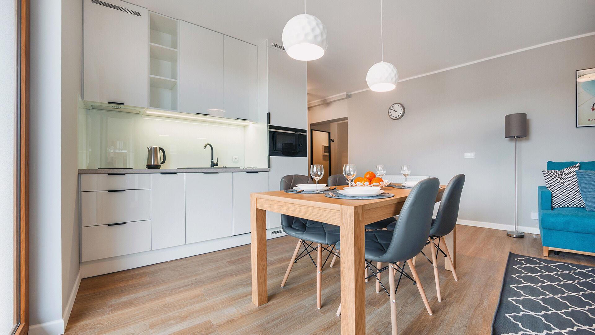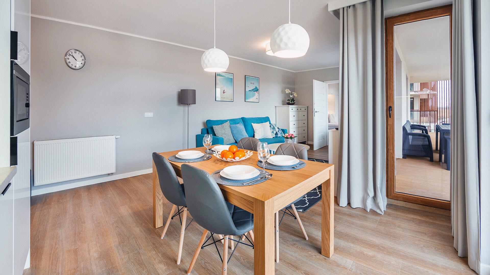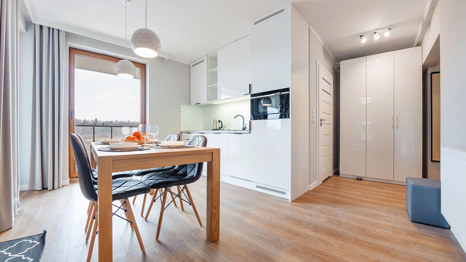 • Haustiere sind in der ausgewählten Wohnung erlaubt. Die Kosten für den Aufenthalt mit einem Haustier betragen 40 PLN pro Tag.