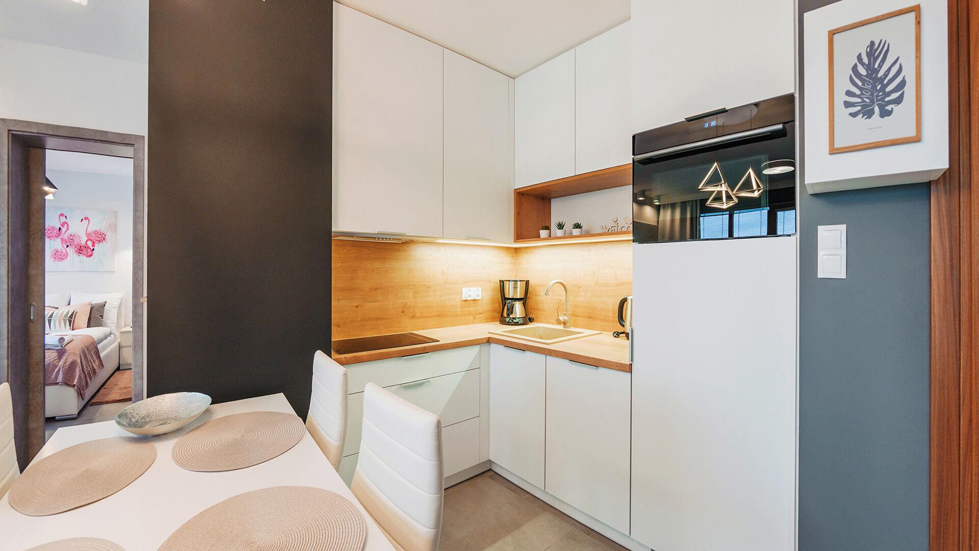 Die Apartments im Objekt Resorts Kolobrzeg befinden sich im westlichen Teil von Kolobrzeg, abseits des städtischen Trubels, umgeben vom Grün des NATURA-2000-Parks. Diese Lage garantiert saubere Luft, malerische Ausblicke und direkten Kontakt zur Natur. Die Plazowa-Straße mit ihren breiten Gehwegen und Radwegen ist ein Teil der R10-Fahrradroute. Ein fünfminütiger Spaziergang über einen direkten Zugang zum Meer reicht aus, um den breiten, sandigen „Weststrand” zu erreichen; ganz in der Nähe befindet sich auch ein Hundestrand. Alle Apartments sind hochwertig ausgestattet und verfügen über funktionale, voll ausgestattete Küchenzeilen sowie geräumige Terrassen mit Blick auf den Innenhof oder das Grün des NATURA-2000-Parks. Vor dem Gebäude gibt es einen öffentlichen, kostenpflichtigen Stadtparkplatz (begrenzte Anzahl an Stellplätzen). Auf dem Gelände stehen ein nummerierter Außenparkplatz sowie Parkplätze in der Tiefgarage zur Verfügung, die den meisten Apartments zugeordnet sind und gegen Aufpreis genutzt werden können. Im Objekt befindet sich ein Schwimmbad, das täglich von 10:00 bis 21:00 Uhr geöffnet ist, sowie eine Sauna, die täglich von 16:00 bis 21:00 Uhr geöffnet ist. Der Pool befindet sich im Gebäude A; aus Gebäude B gibt es keinen direkten Zugang zu Gebäude A.