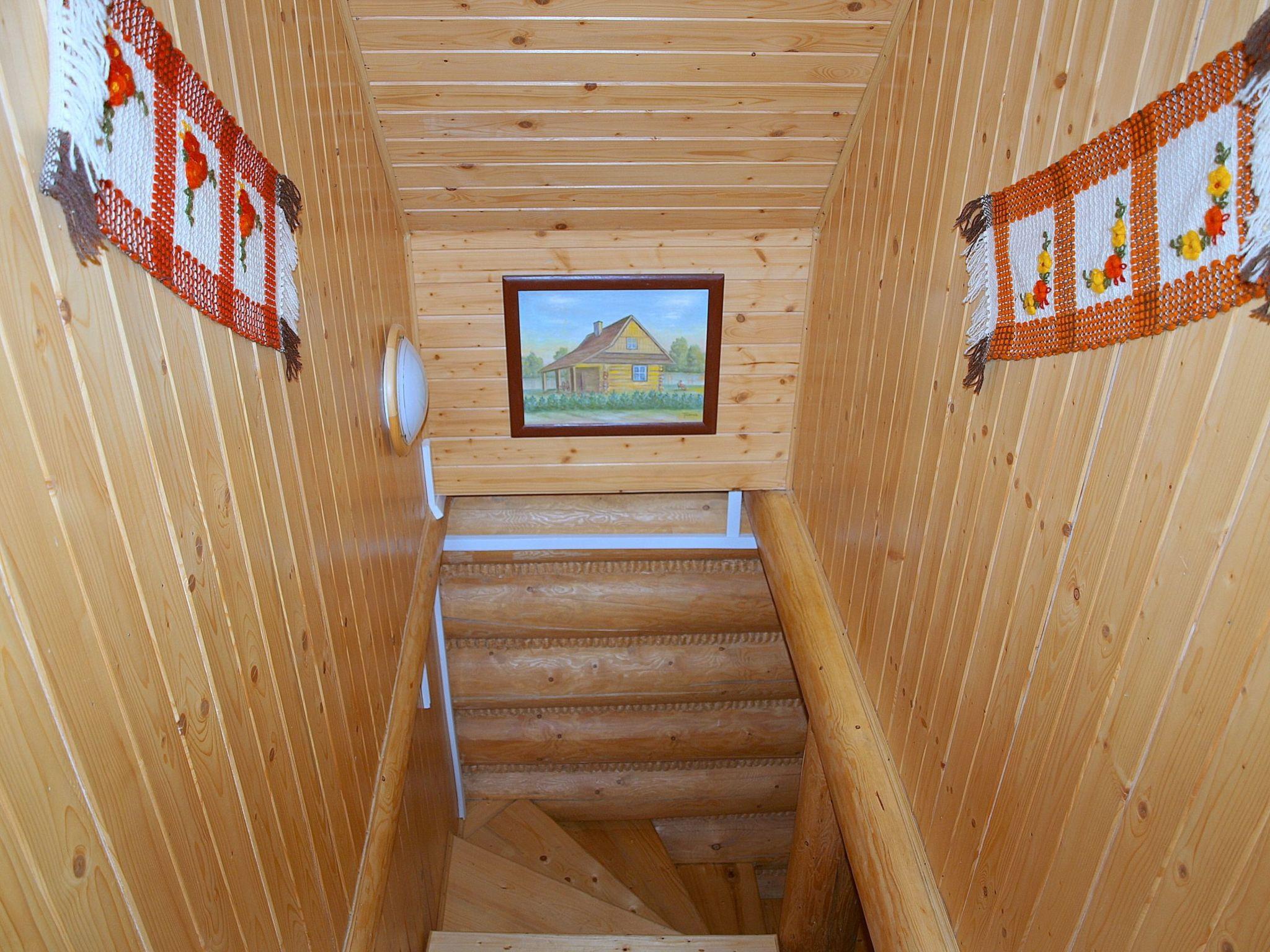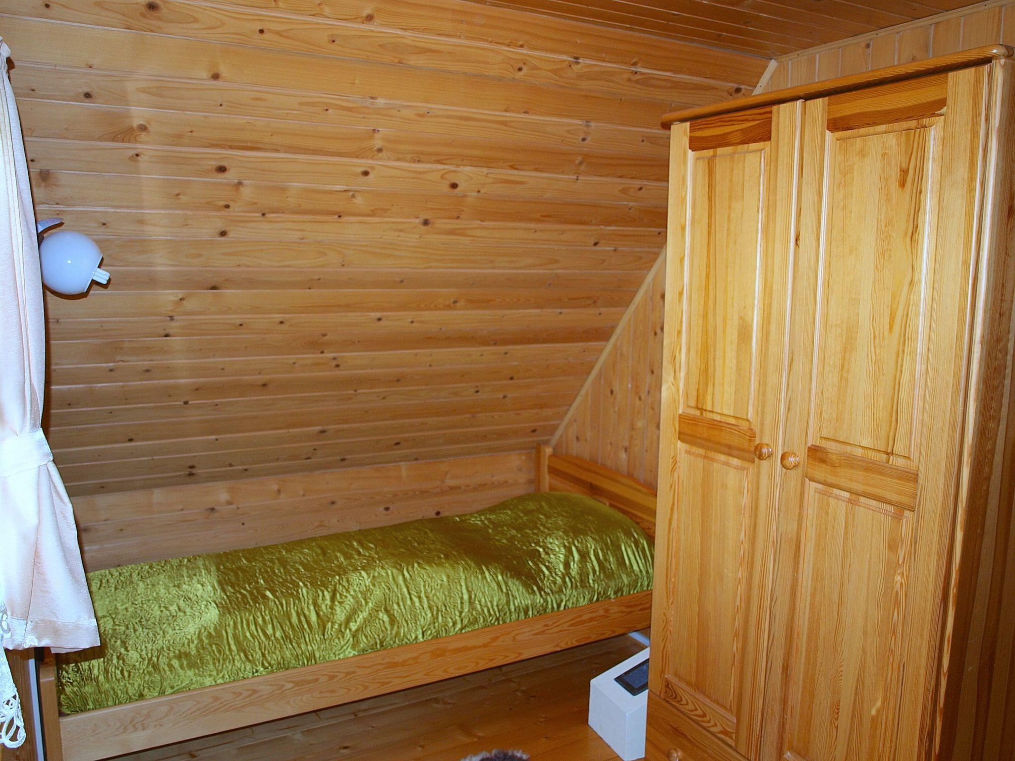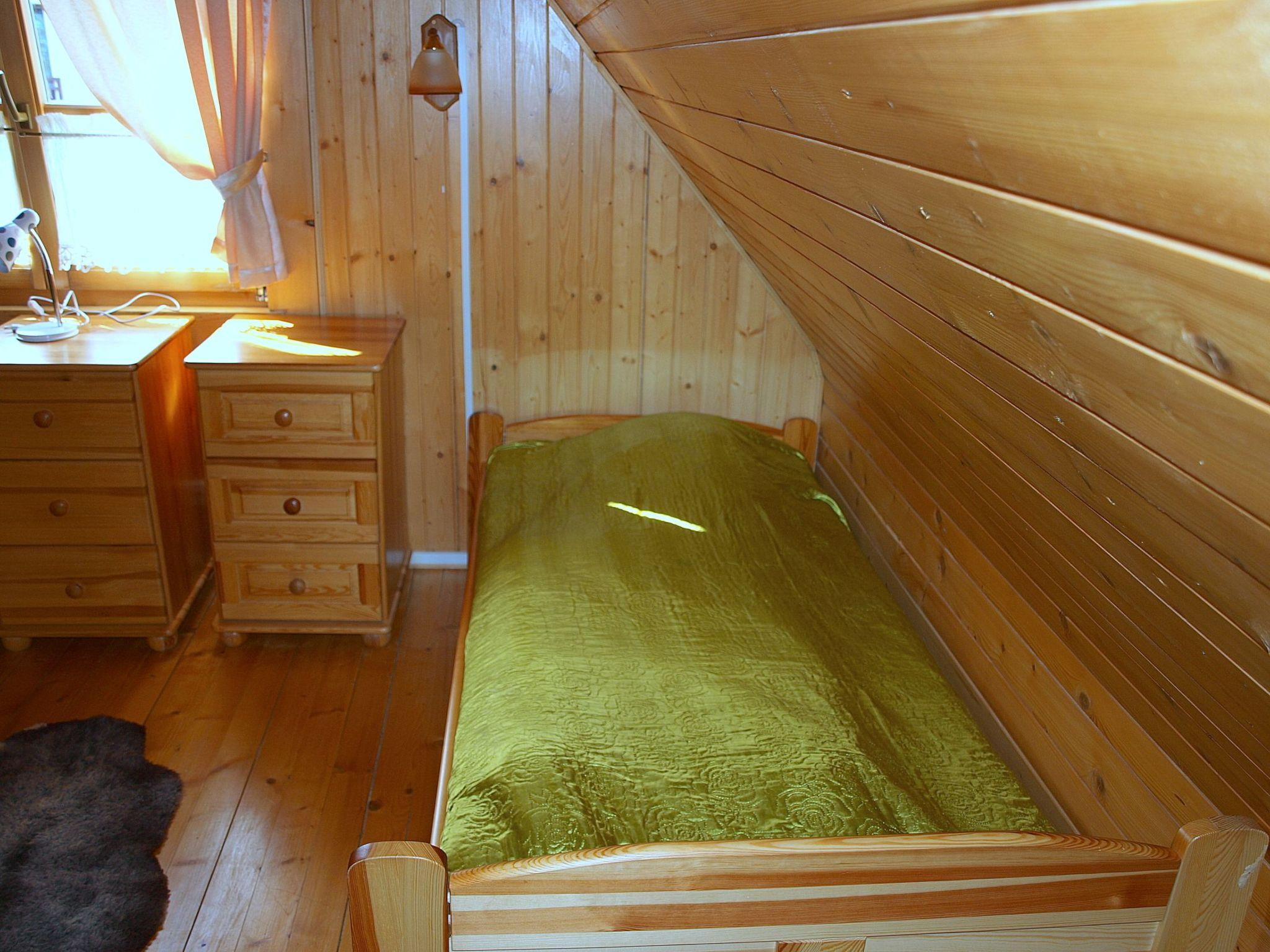 The interiors of the cottage are cosy and finished in wood, with comfortable wooden furniture creating the perfect environment for relaxation. The cottage is designed to comfortably accommodate up to seven people. There are bathrooms on both floors - on the ground floor with a shower, and on the ground floor with a toilet and washbasin. There are two bedrooms upstairs and a double bed on the ground floor, as well as a fully equipped kitchenette and a living room with a 32-inch TV, sofa and romantic fireplace.