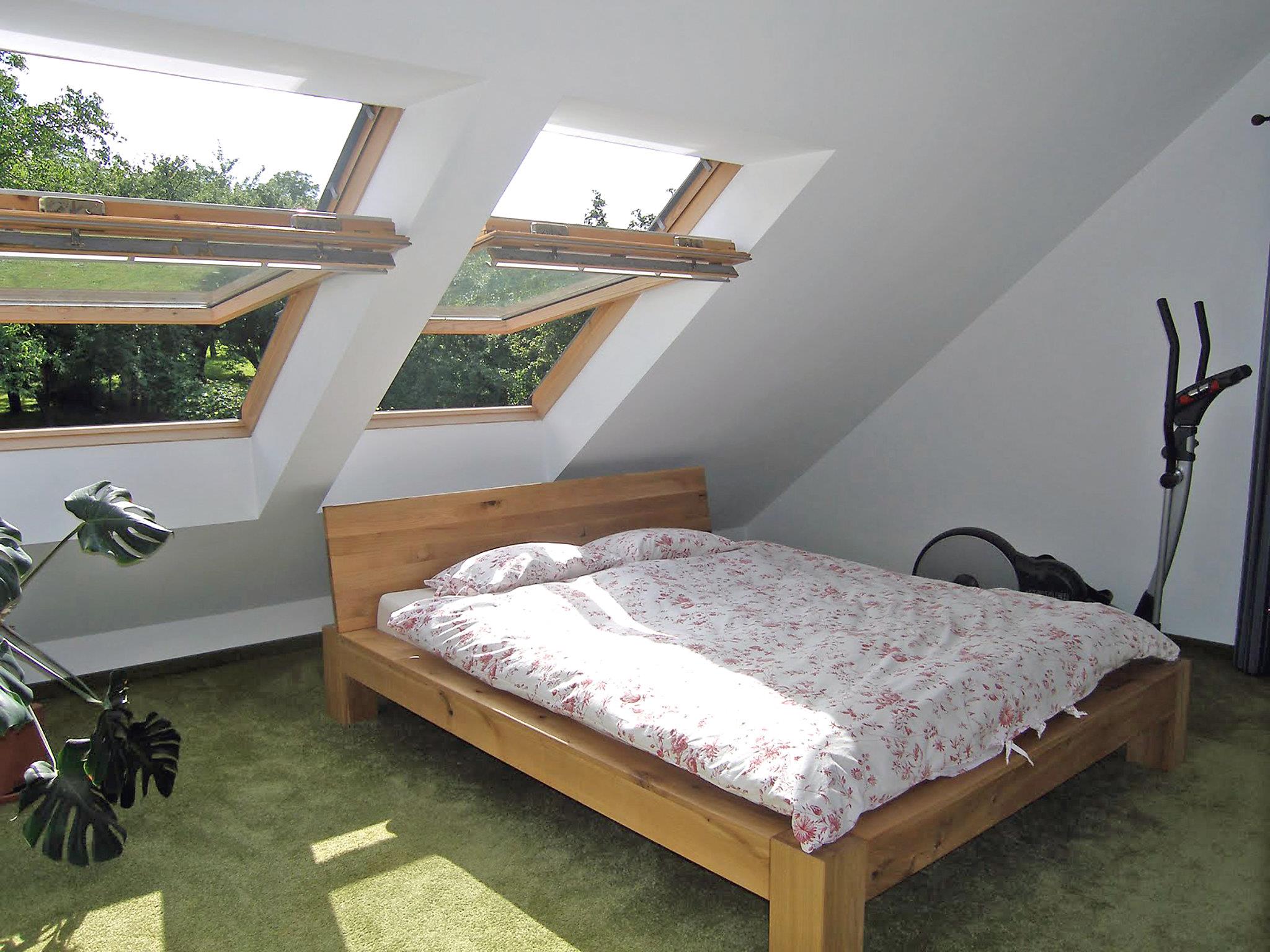 5-room house 160 m2. Open living/dining room 30 m2 with open-hearth fireplace, satellite TV, radio, hi-fi system and DVD. Exit to the garden, to the terrace. Lounge 30 m2 with library. Open kitchen 12 m2 (oven, dishwasher, 4 ceramic glass hob hotplates). Shower/WC. Top floor: 1 room 20 m2 with 1 french bed (160 cm, length 200 cm). 1 room 20 m2 with 1 double sofabed (120 cm, length 200 cm). Exit to the balcony. 1 room with 2 beds (90 cm, length 200 cm). Bath/WC with corner bath. Gas heating, wood heating, floor heating. Terrace 40 m2, terrace 12 m2. Terrace furniture, deck chairs (3), box-room. View of the valley, the countryside and the river. Facilities: washing machine, sauna. Internet (WiFi, free). Garage (2 cars). Please note: suitable for families. Smoke alarm. Additional mattress 90x200 and bedding available. The house also has a study room (12 m2) with a library.