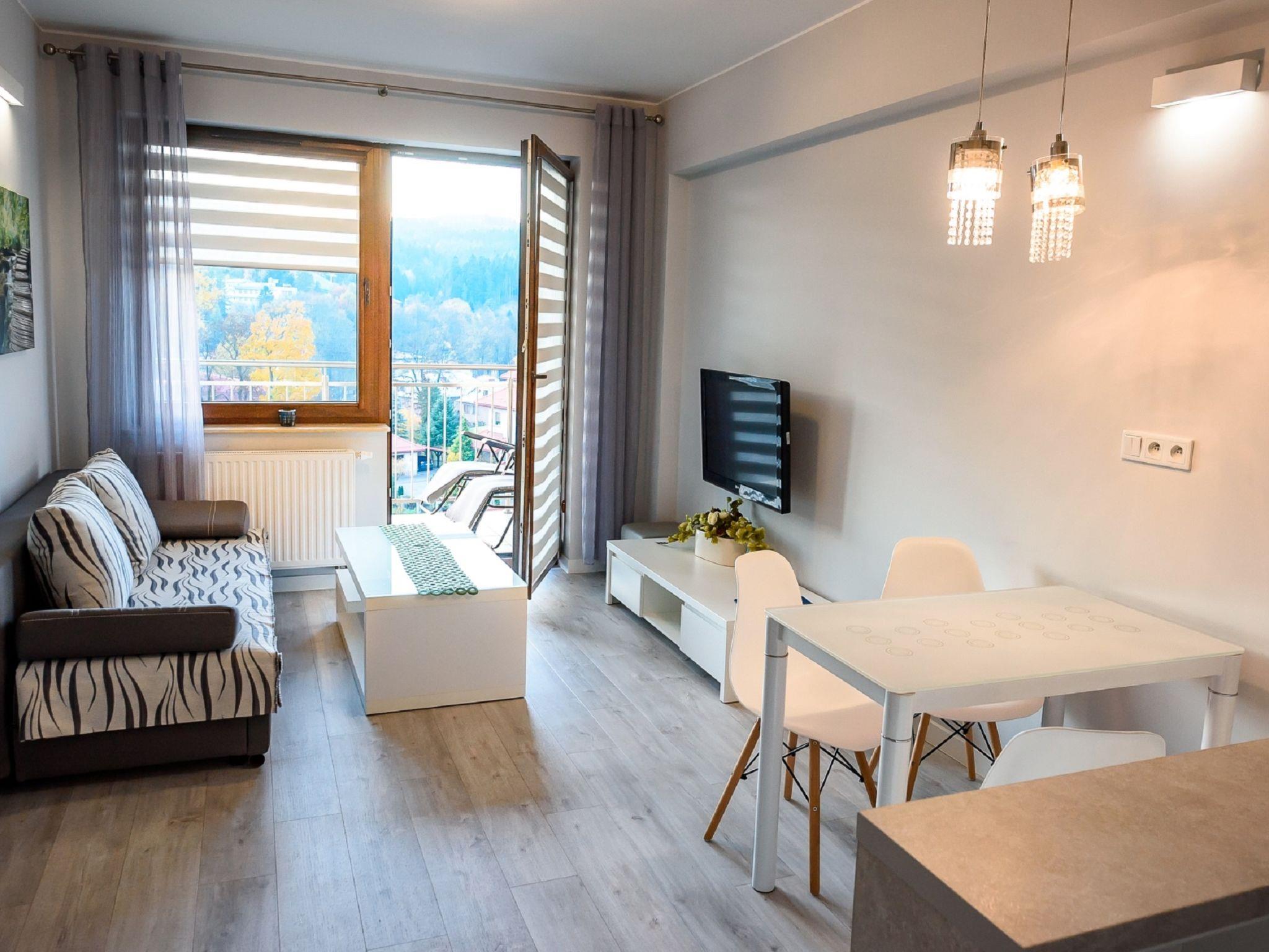 Modern, cosy apartment block "Zielony Zdrój". In a sunny position. In the house: WiFi, storage room for skis, central heating system. Bus stop 650 m, indoor swimming pool 30 m. Nearby attractions: Sanatorium Wojskowe 30 m, Wyciag narciarski Henryk 600 m, Park Zdrojowy w Krynicy Zdrój 600 m. Please note: the photograph shows a typical example. Additional accommodations can be booked. The apartment may be on the ground floor, first floor or second floor. Some apartments with mountain view / partial view. The apartments do not have parking spaces. Children admitted above the maximum number of people - up to 3 years of age.