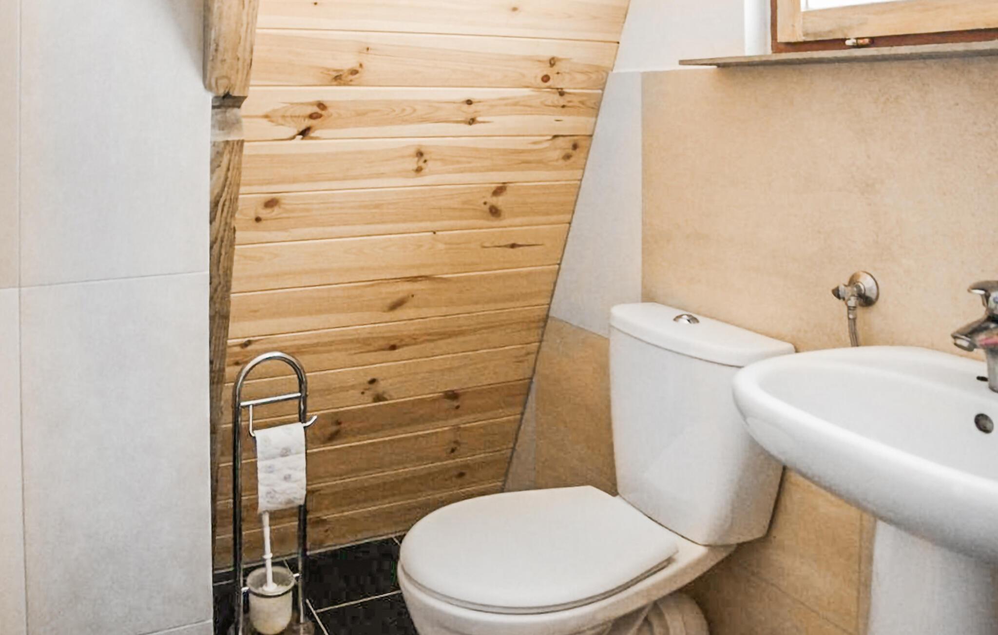 Gør jer klar til en storslået ferie i grønne omgivelser i dette karakteristiske træhus.